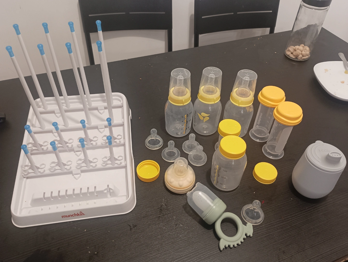 Medela bottles with teats including 1 Medela calma teat and dryer