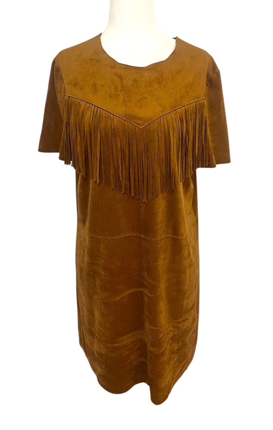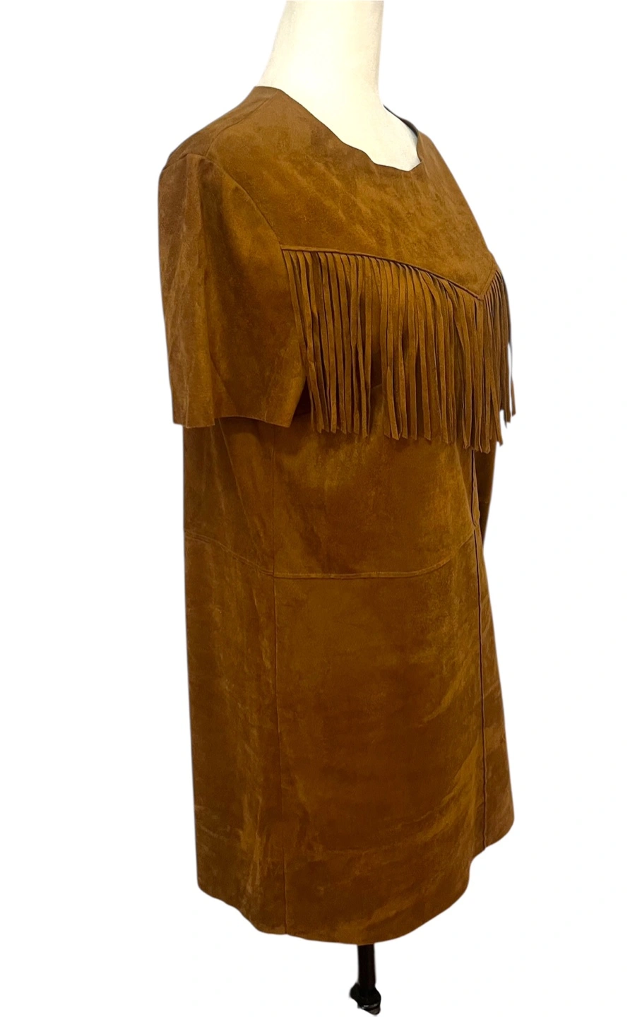 Unleash your inner cowgirl with this stylish Forever 21 dress! The rich brown hue evokes a sense of warmth and earthiness, while the soft, faux suede material feels luxurious against your skin. The eye-catching fringe detailing across the chest adds a playful, bohemian touch, creating movement and visual interest. The classic shift silhouette offers a comfortable and flattering fit, making it easy to dress up or down. This dress is perfect for a casual day out, a music festival, or a fun night with friends. Style: Shift Dress Length: Short Color: Brown Department: Women Sleeve Length: Short Sleeve Pattern: Solid Occasion: Casual, Party/Cocktail Material: Polyester, Polyester Blend, Suede, Faux Suede, Spandex Neckline: Round Neck Fabric Type: Woven Character: Cowgirl, Bohemian, Festival, Western Like New PU Ottawa & Strasburg, Kitchener Keywords: Forever 21, Fringe Dress, Faux Suede, Western Dress, Bohemian Dress, Brown Dress, Shift Dress, Short Sleeve Dress, Festival Outfit, Casual Dress, Womens Dress, Size L, Boho Dress, Cowgirl Dress