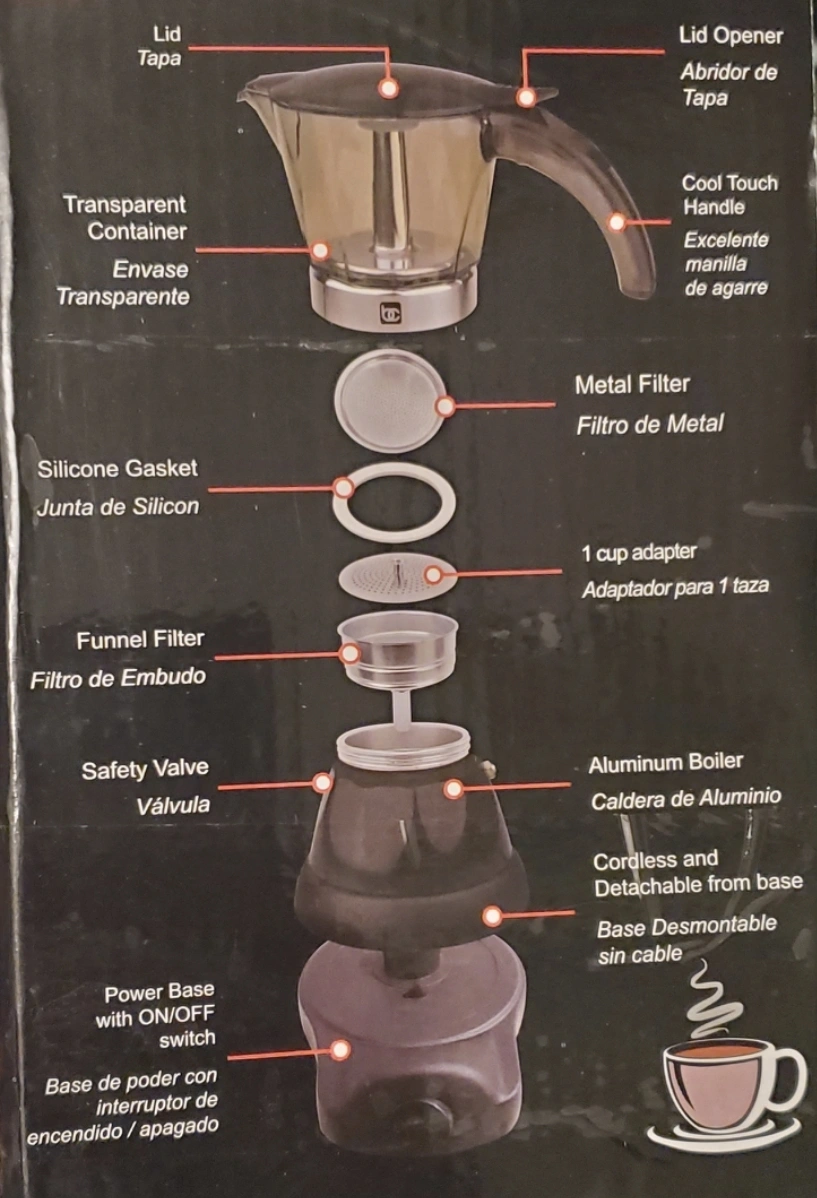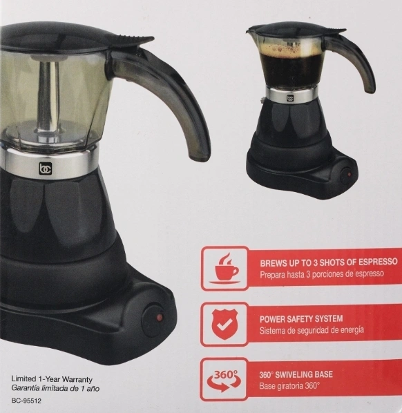 Like New Condition H 8.25" L 8" x W 5" Brews Up To 3 Shots of Espresso Automatic Shut Off Allows Brewing Without the Worry of Burning the Espresso Transparent Carafe to Monitor Brewing Electric Aluminum Boiler Power Base with On/Off Switch ***Please Check Out My Other Ads