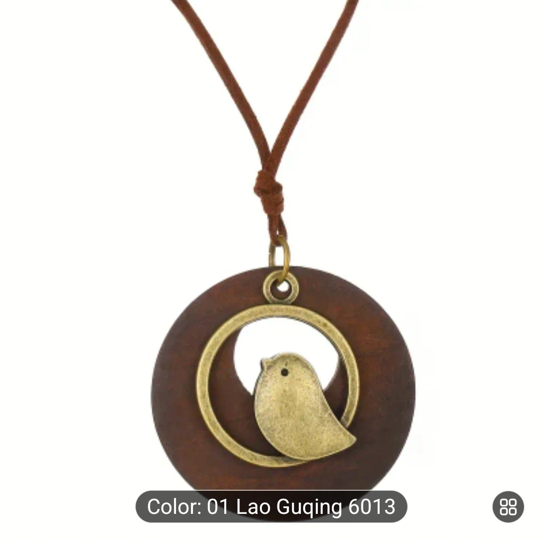 Vintage Personality Ethnic Style Wooden Bird Pendant Necklace Cute Bird Neck Color- Brown available green - Sold.