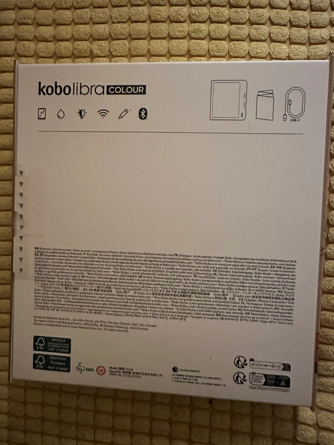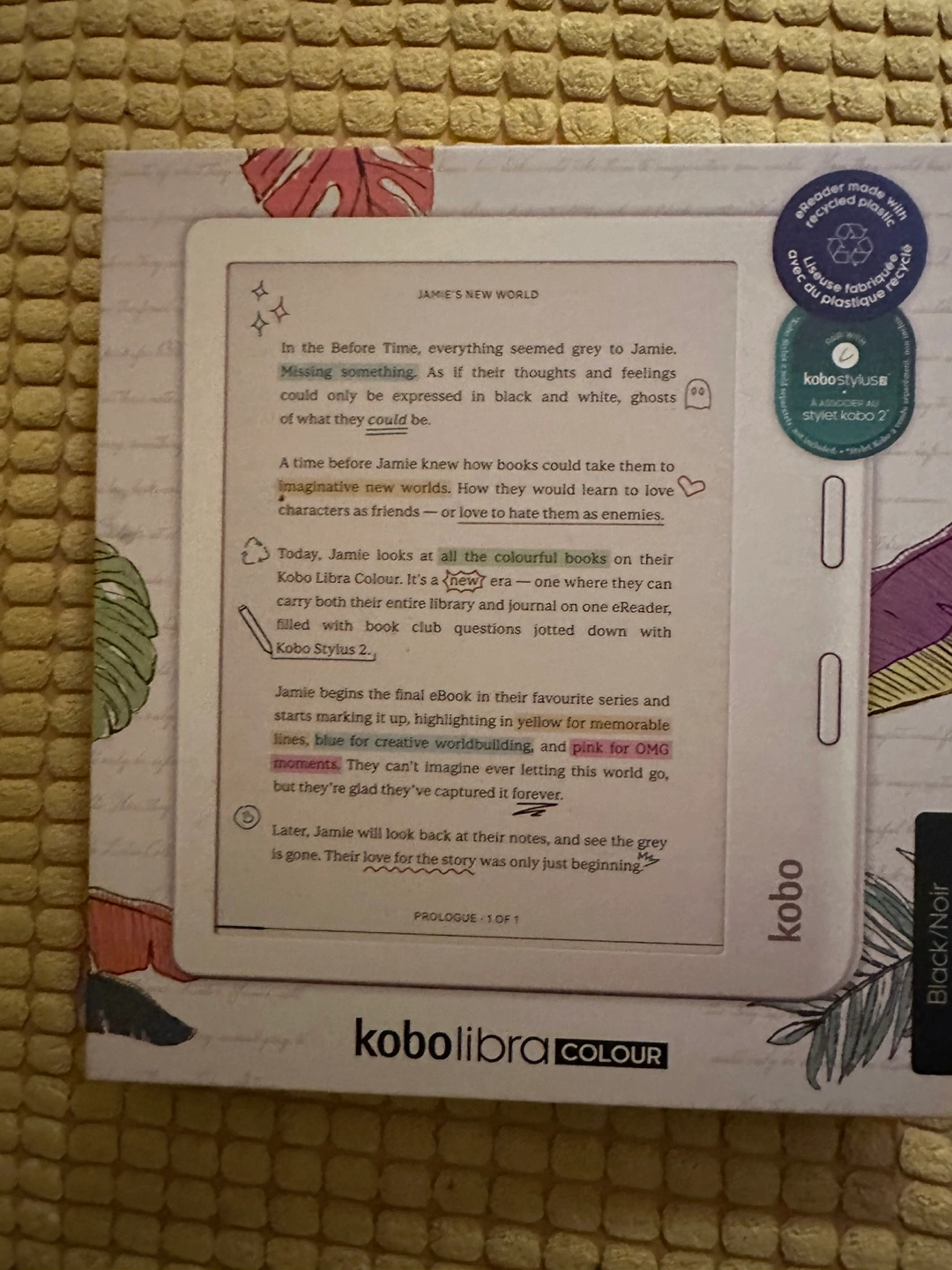 A Kobo eReader. Colour screen. Comes with a stylus. Perfect for reading on the go.