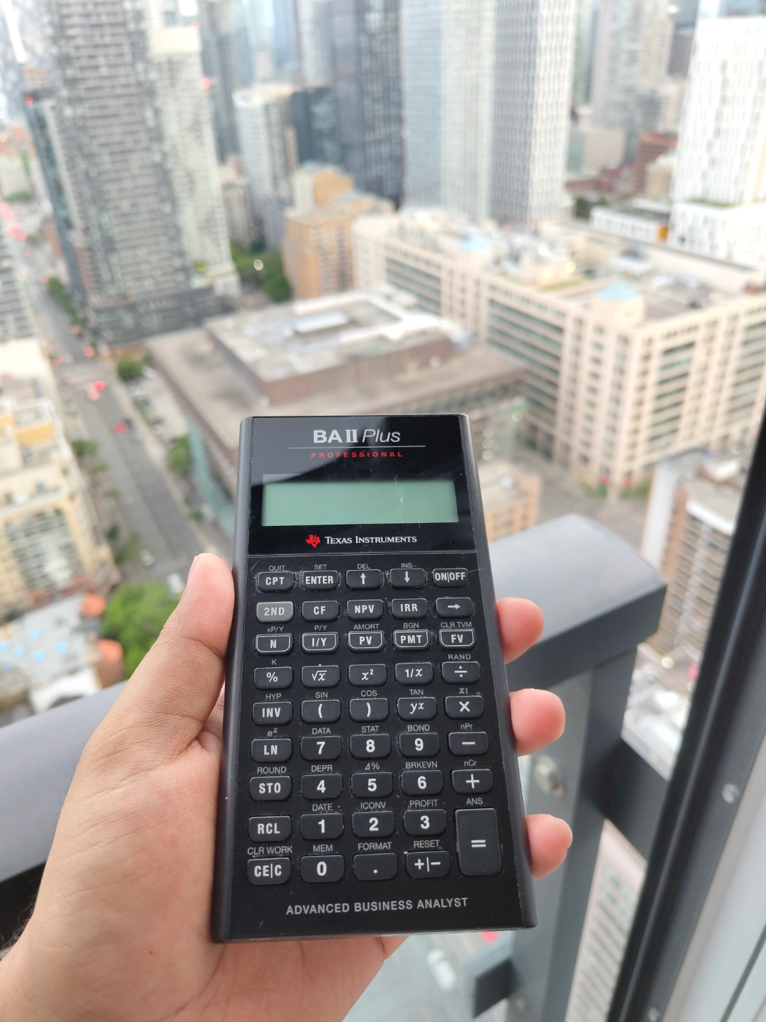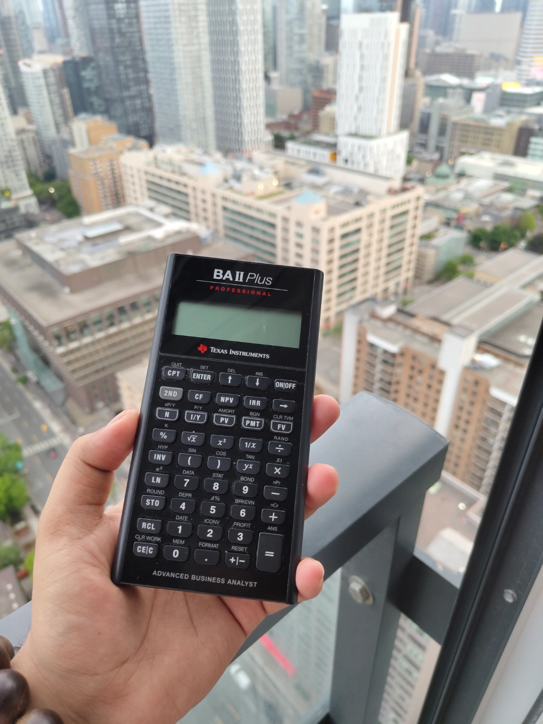 Black calculator. A variety of buttons. It has an LCD screen. Can be used for calculations in everyday situations, providing a sense of peace of mind.