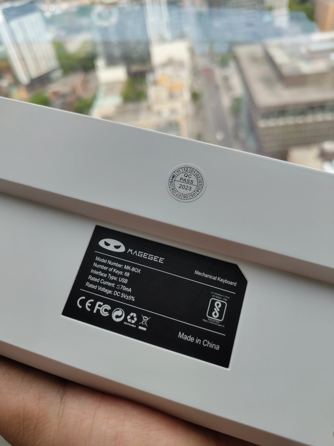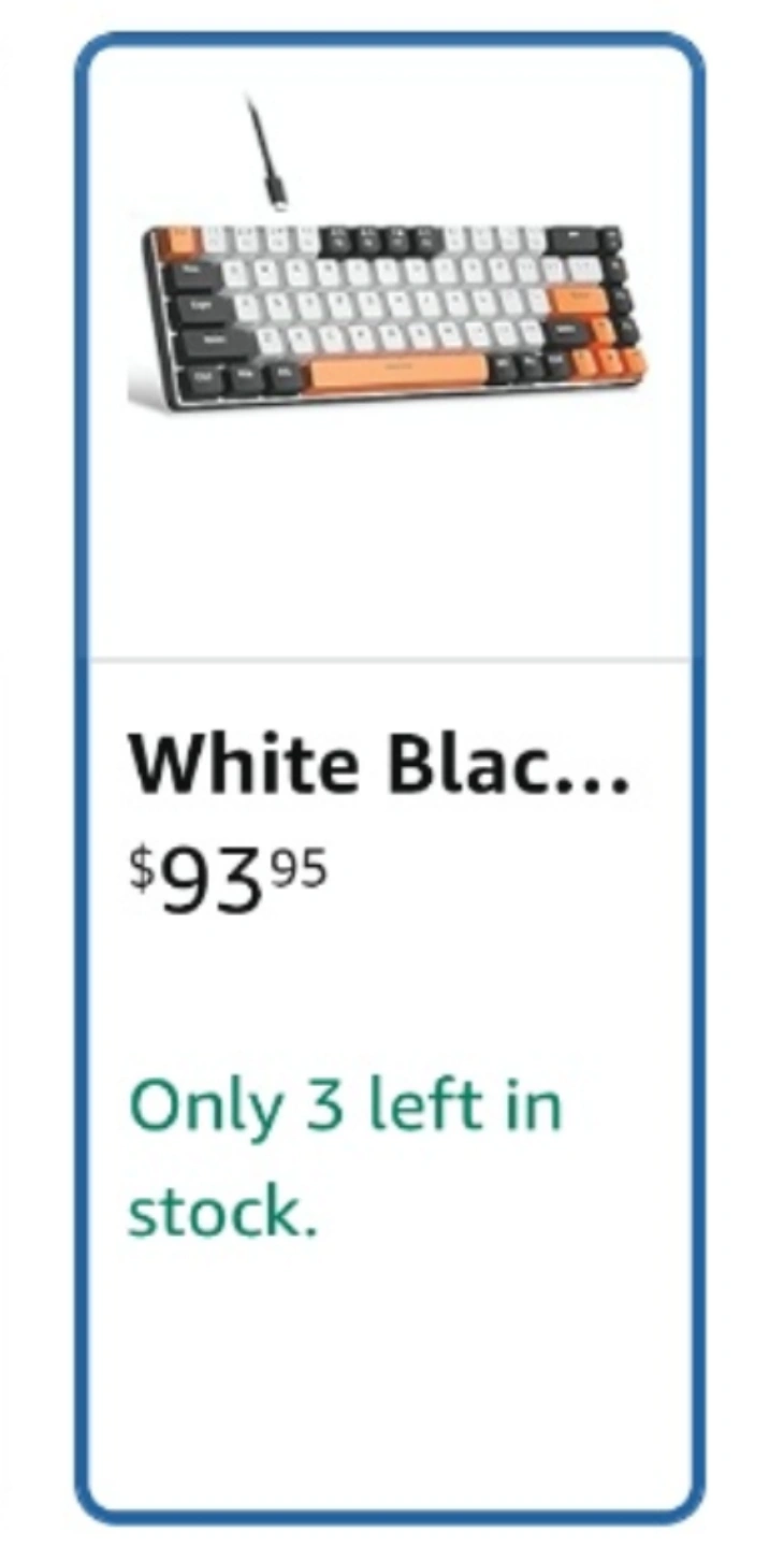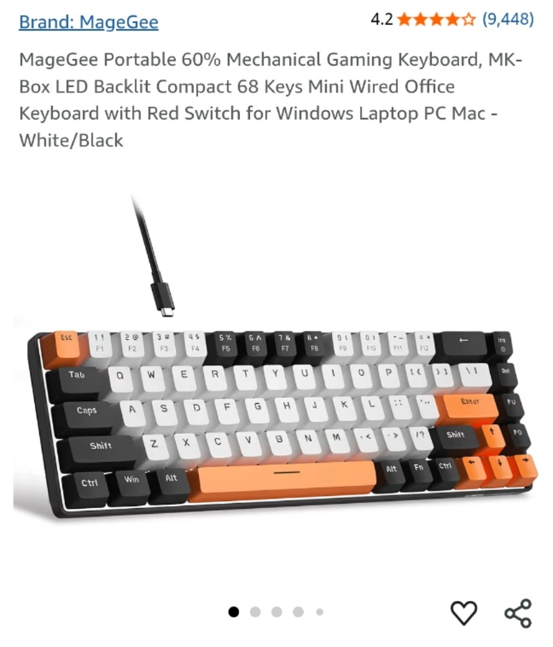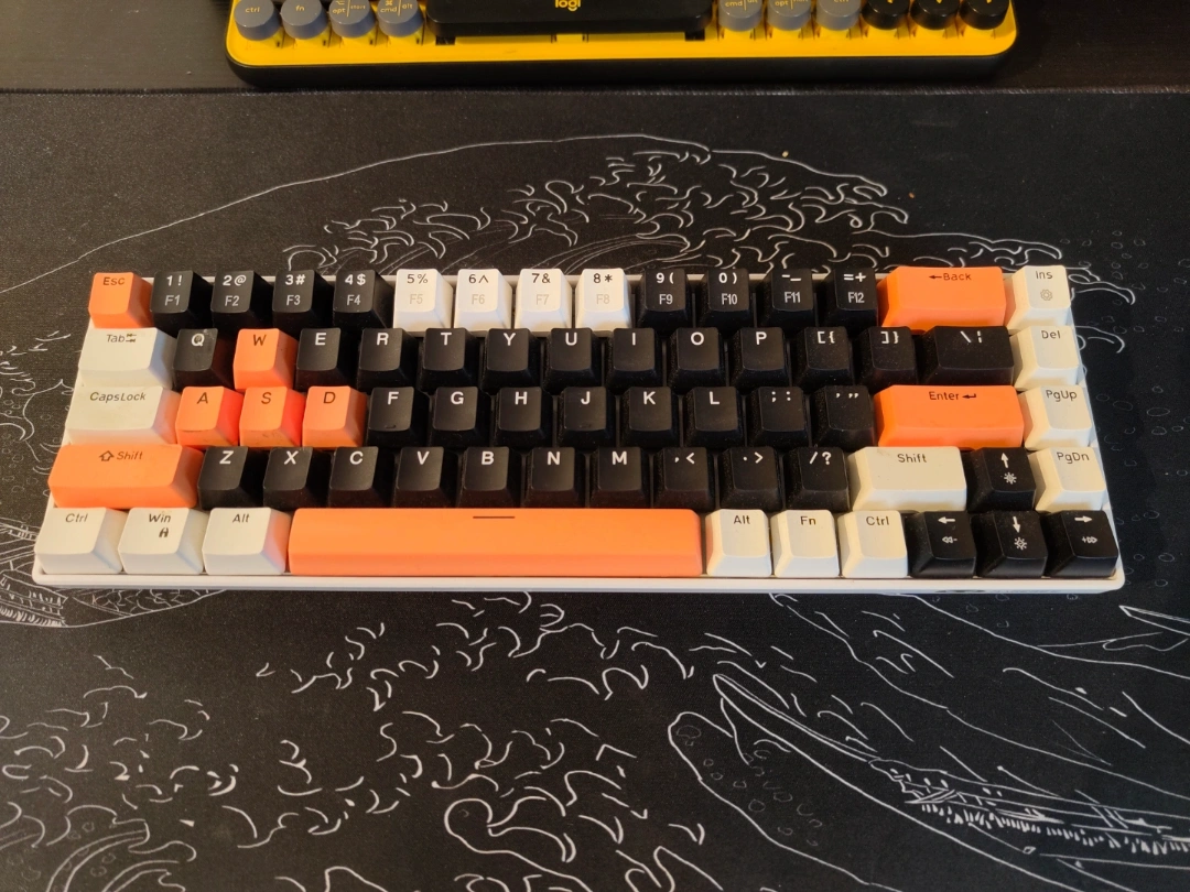 A mechanical keyboard, featuring a variety of keys. It has a white body and black and orange keys. The keyboard's small form factor makes it easy to find a comfortable position for your hands. Cherry MX Blue switches used for 2 months only selling coz I got a new one