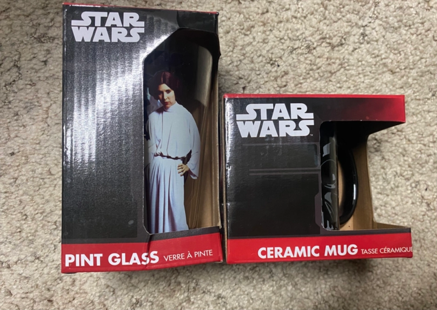 Star Wars pint glass featuring Princess Leia. Ceramic mug with Darth Vader printed on it. These items would be perfect for enjoying your favourite beverages while relaxing after a long day. Pick up on Kennedy road between 19th avenue and Stouffville Road