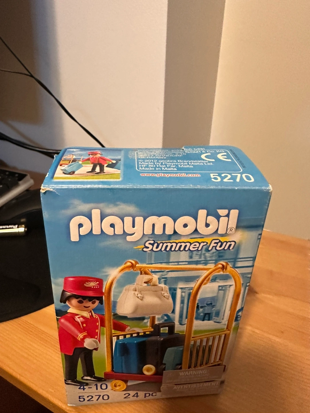 A Playmobil set. Features a hotel porter with luggage cart. Could bring hours of amusement for imaginative play, helping children relax and unwind.