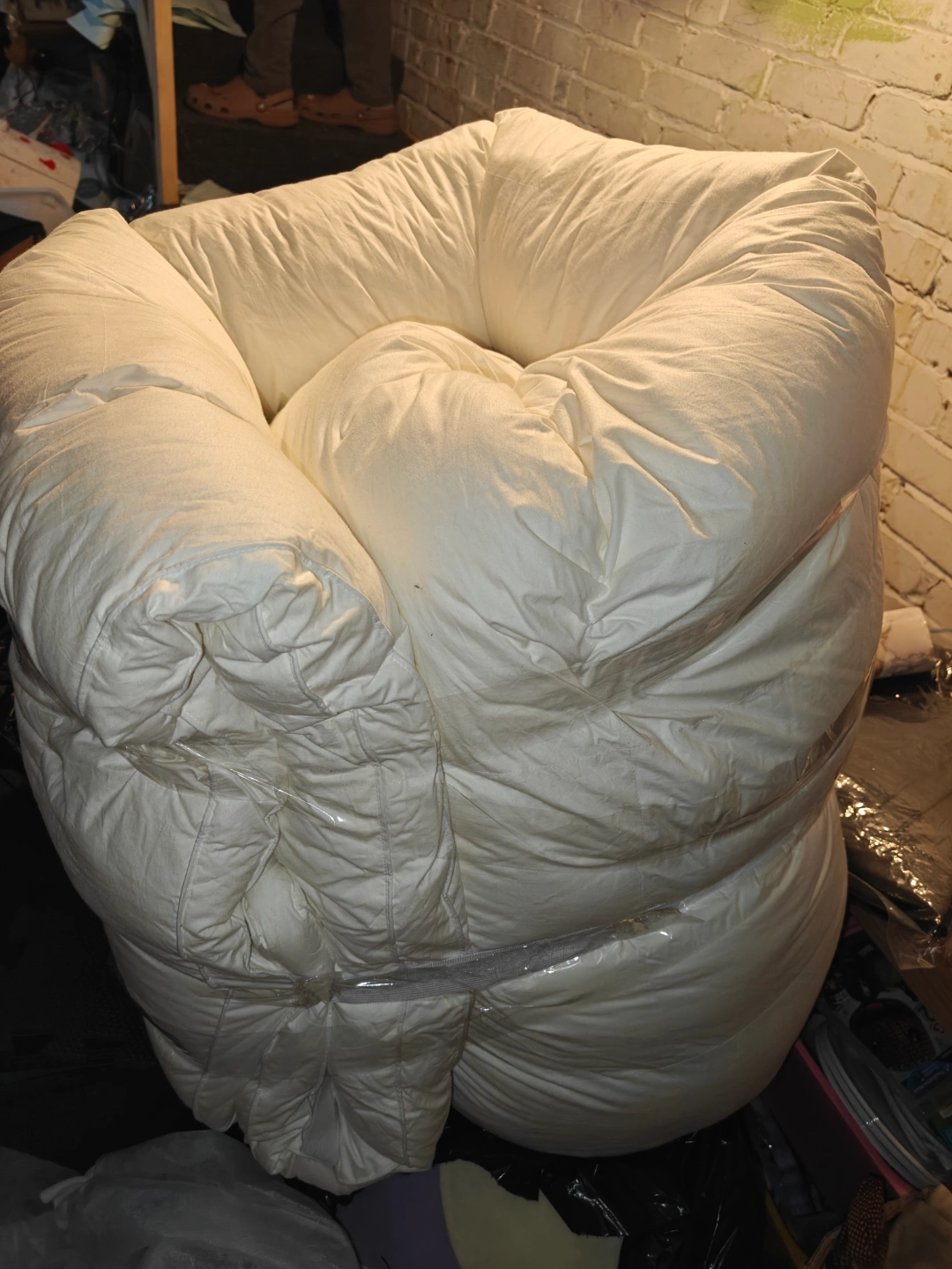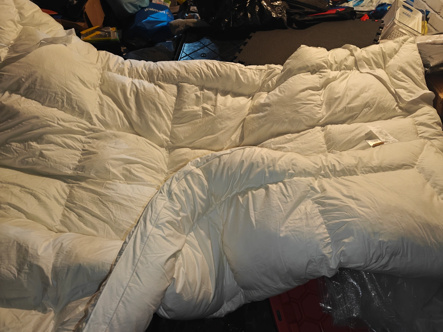 White comforter with quilted design. Made of polyester fibres. Relax and unwind under this cozy comforter. no holds