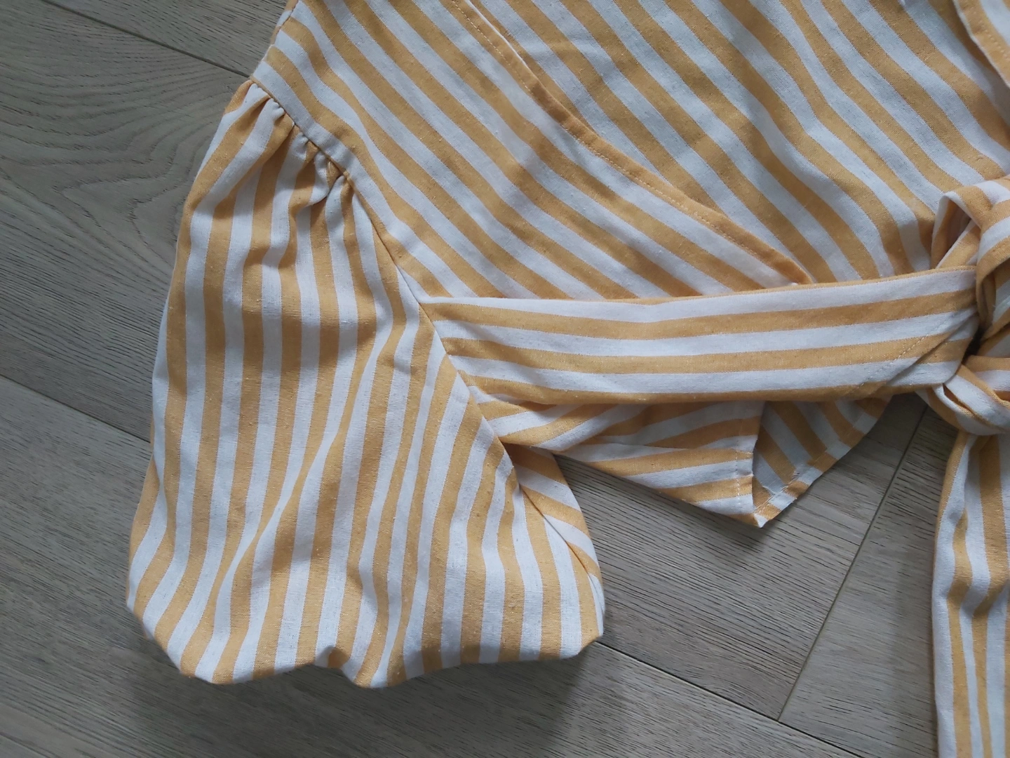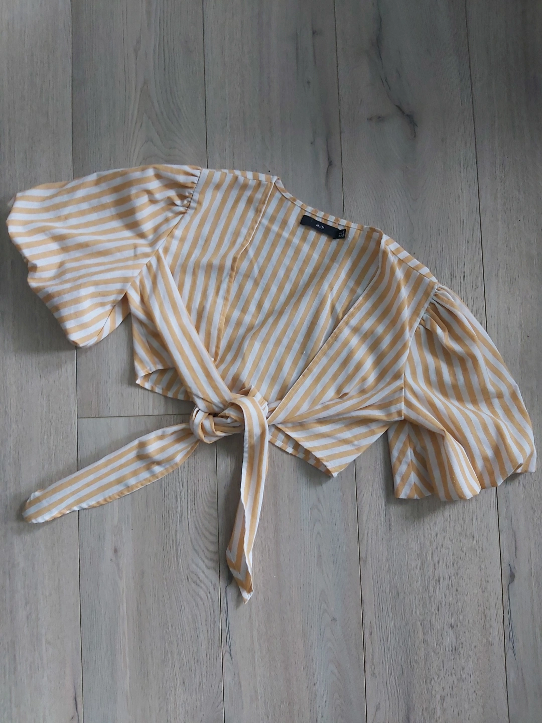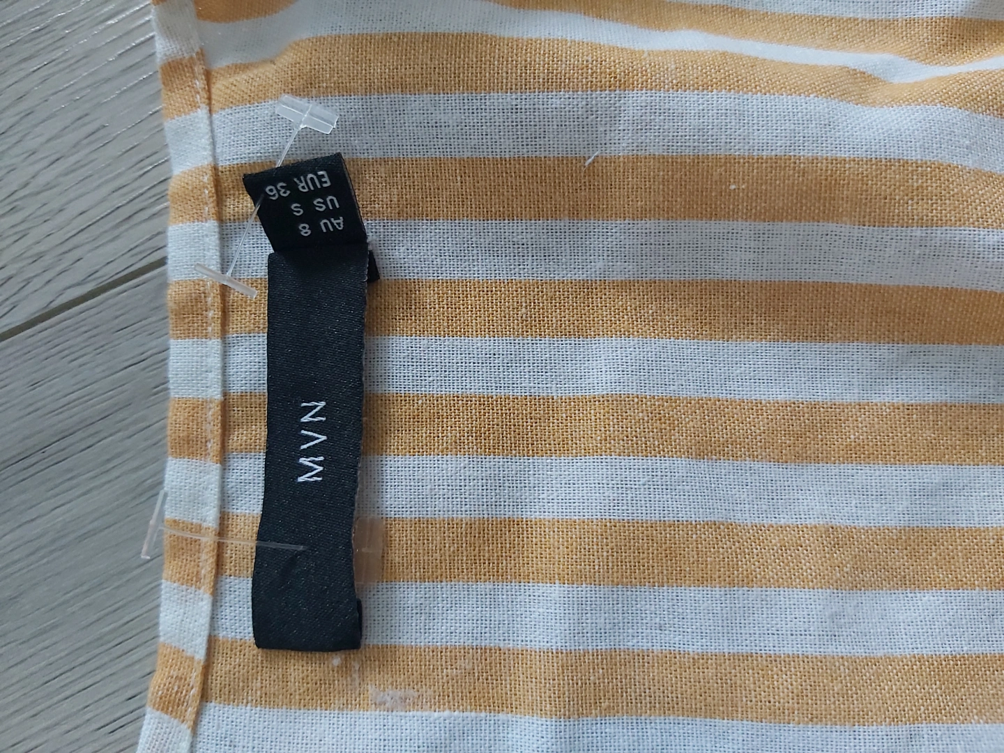 Australian brand. Says S but I'd say is more M. I wear xs/s and this feels a bit big, especially with the slightly puffy sleeves. Feels kinda like linen but 100% cotton