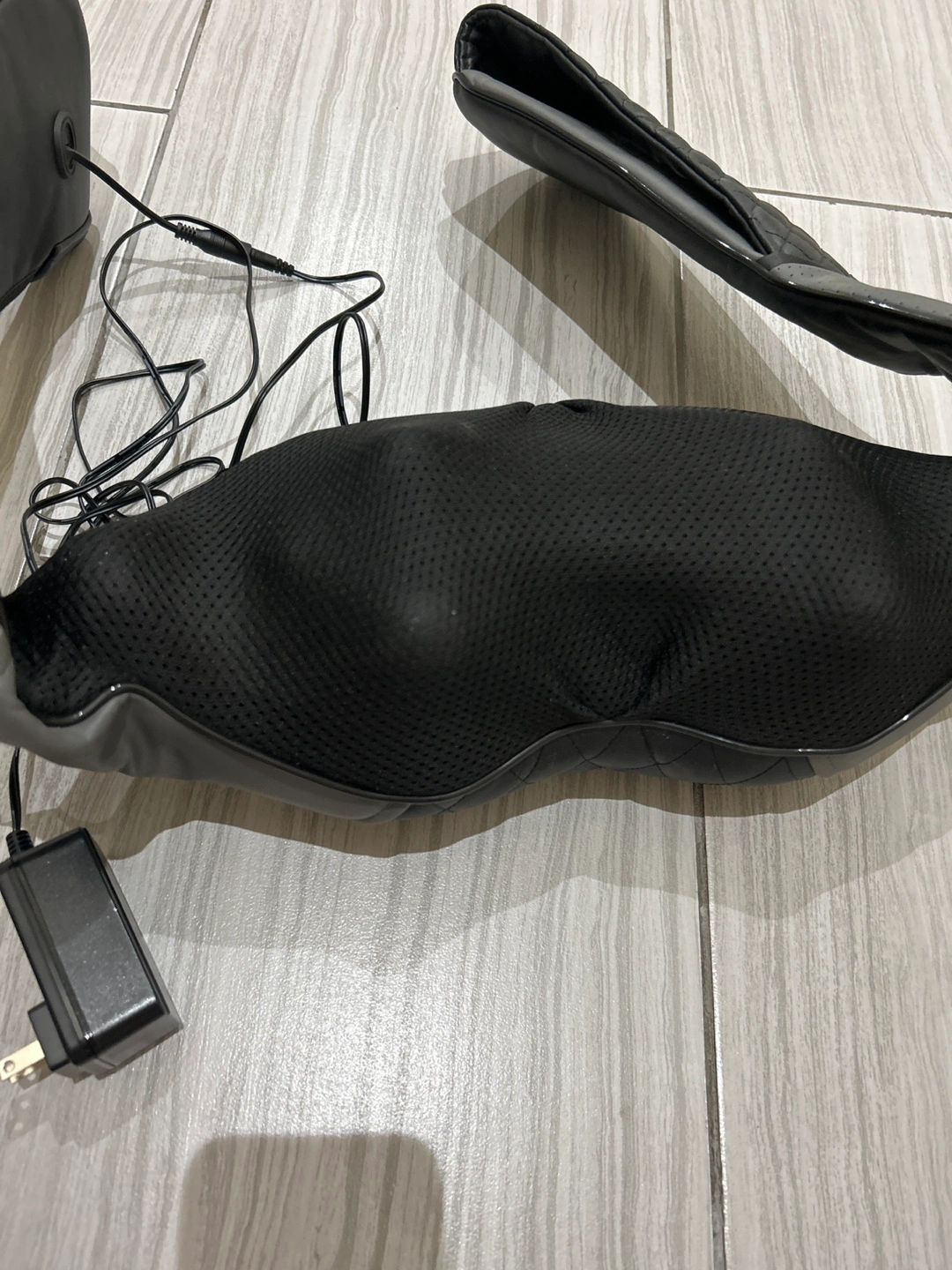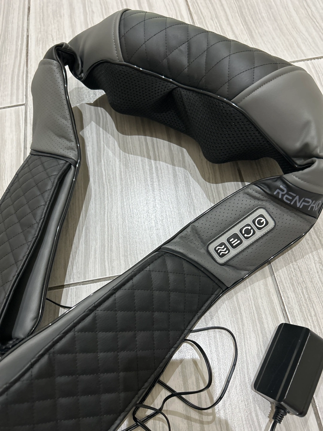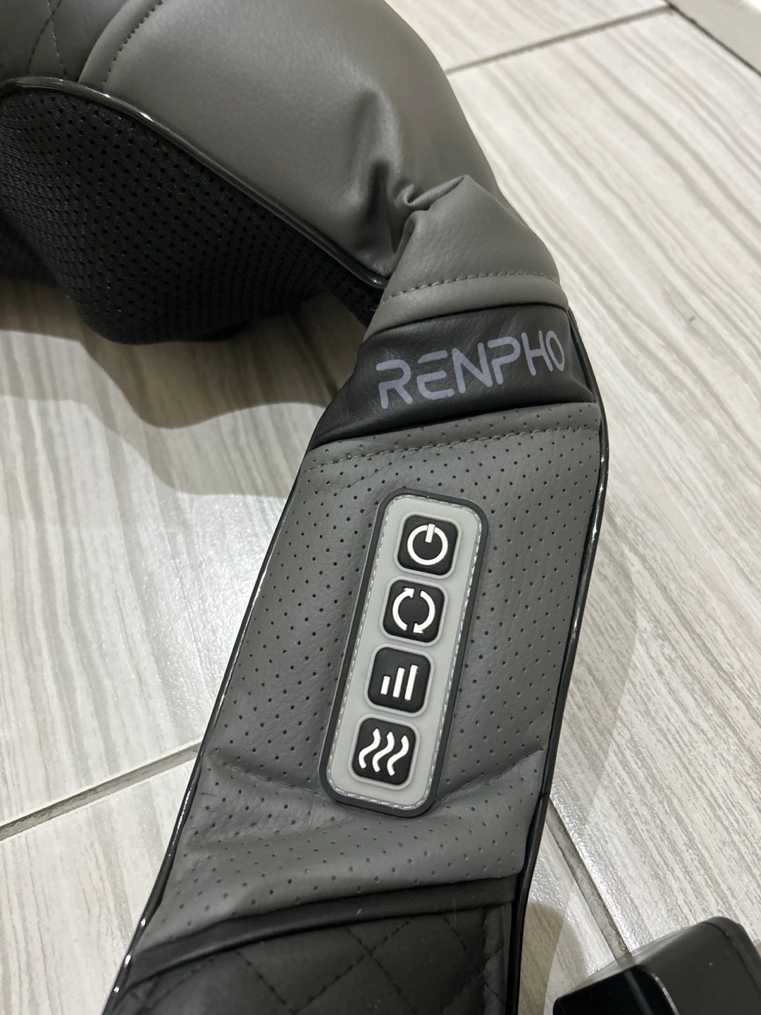 Shoulder and neck massager. Gray and black colours. Featuring a control panel. Comes with a power adapter. You can find some moments of zen with this product.