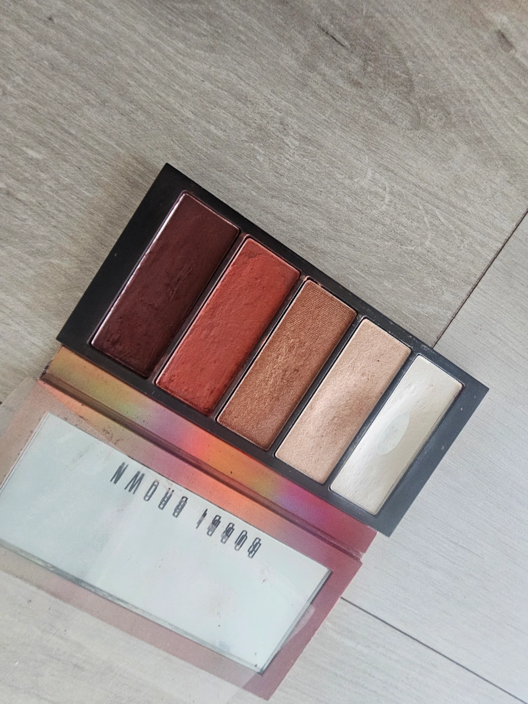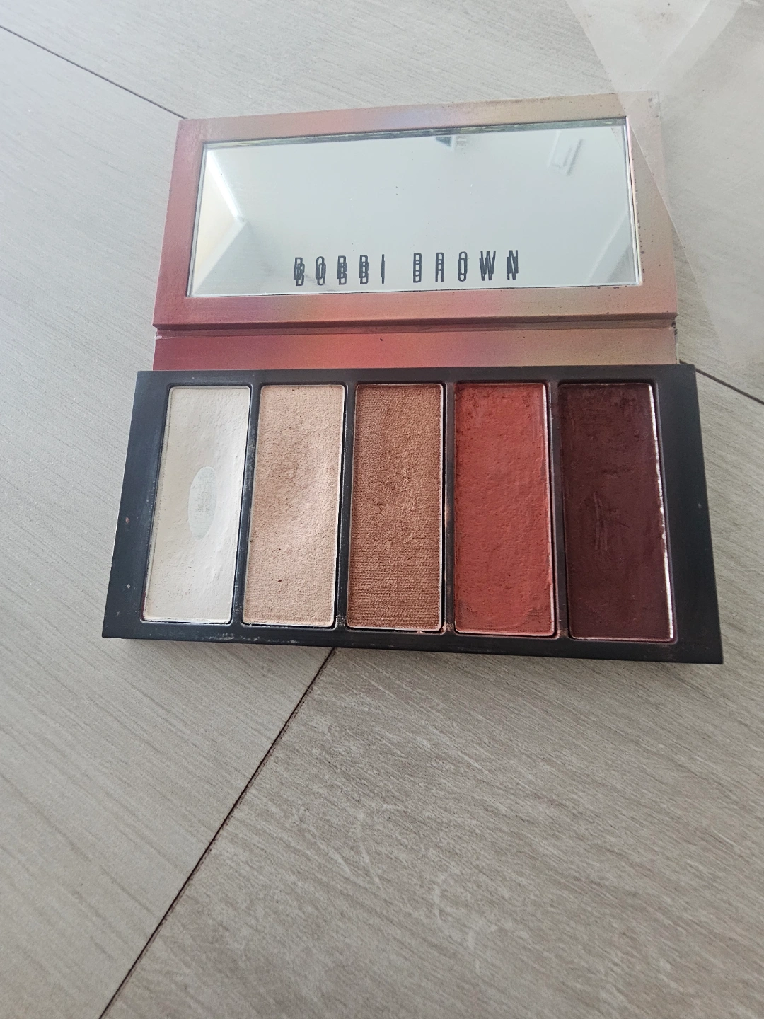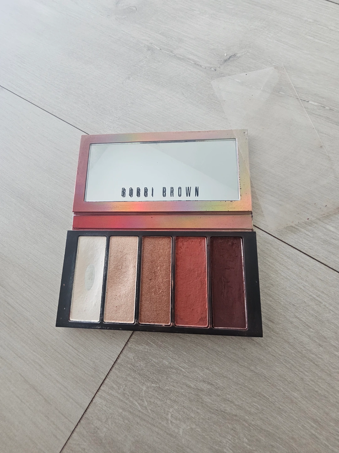 Palette of eye shadow in various shades. Includes a mirror inside. You can take your time and enjoy applying these shades to your eyelids in a soothing manner.