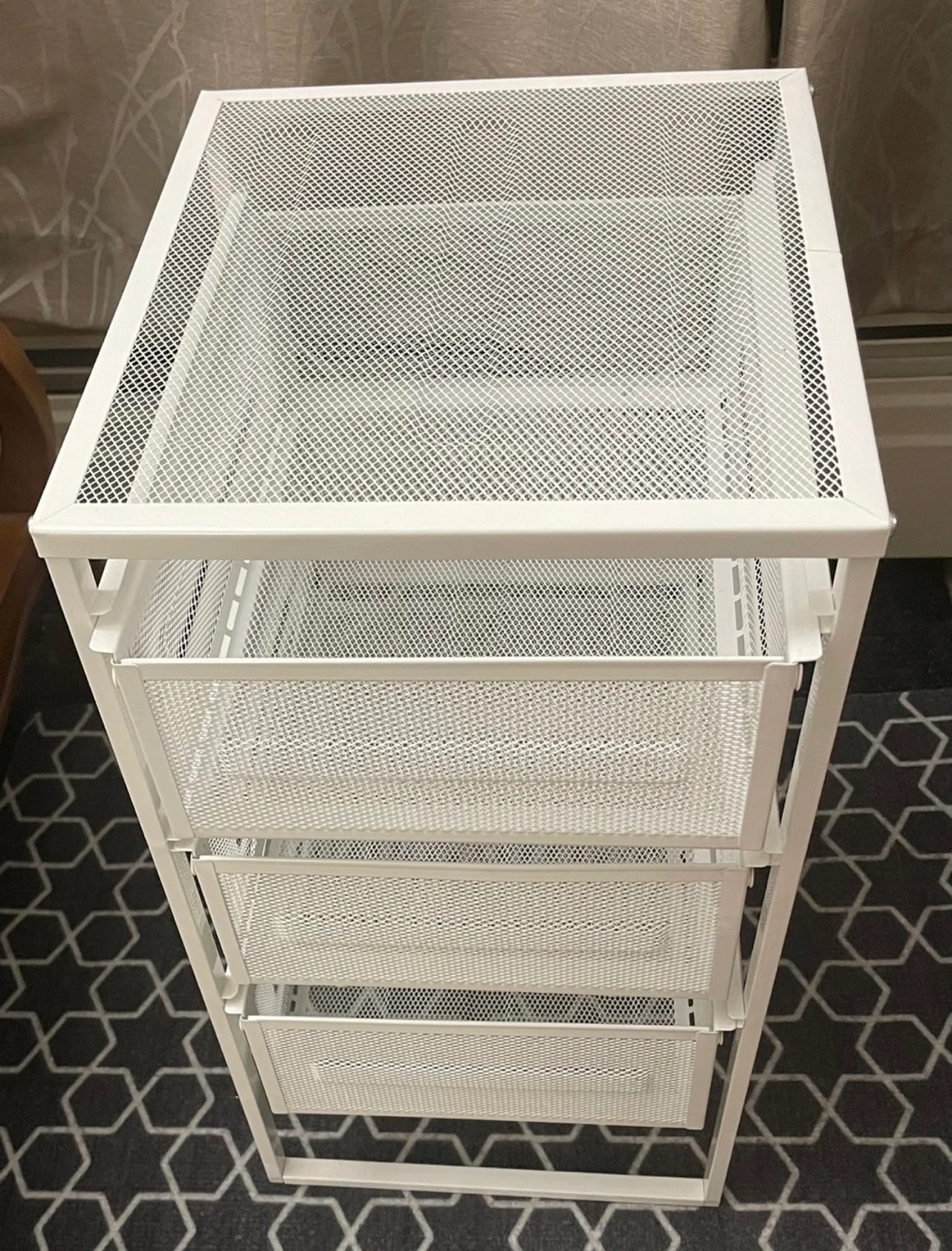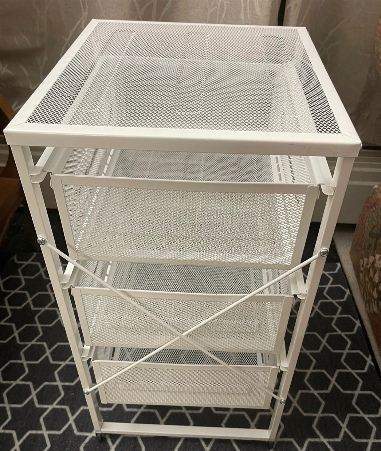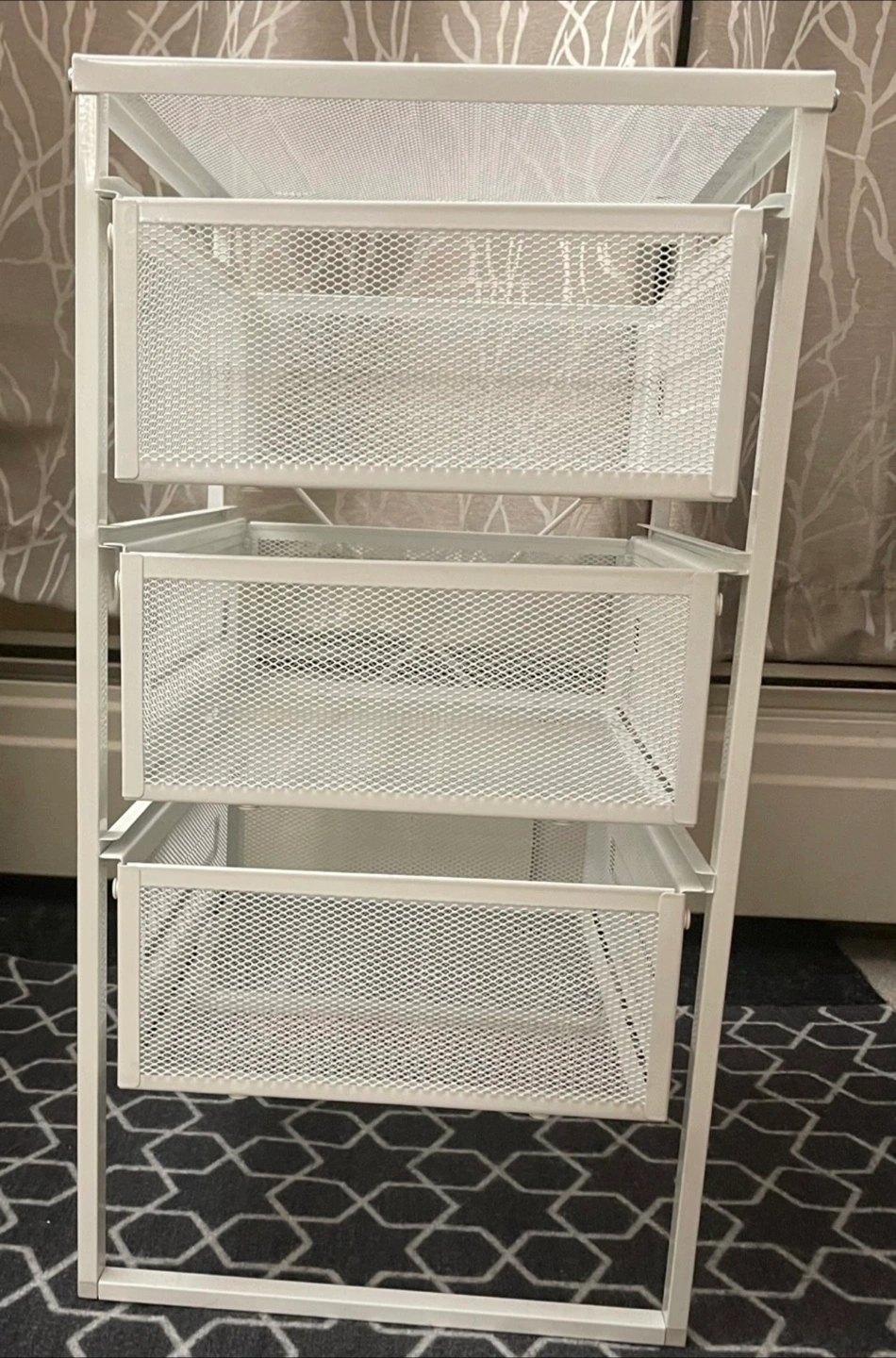 IKEA White metal frame cart. Features three mesh baskets / drawers and a top shelf. Two wheels at the base for easy moving. Perfect for keeping your space organized and tidy. From pet-free home. Rarely used. Excellent condition. Cash and pick up only. **Feel free to check my other listings**