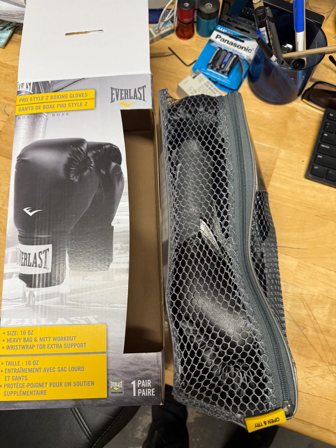 Black boxing gloves. Size is 16 oz. Used only 2 days.Perfect for working on your mental clarity and physical well-being through the practice of boxing.