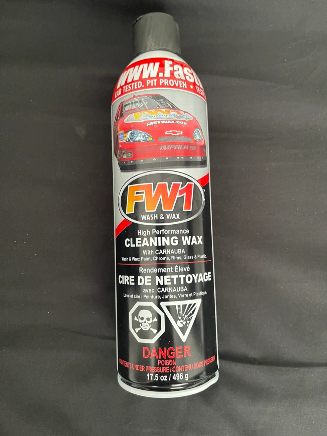 A can of cleaning wax for paint, chrome, rims, glass, and plastic. It has a high performance cleaning formula. Use this to make your car shine for a relaxing car wash.