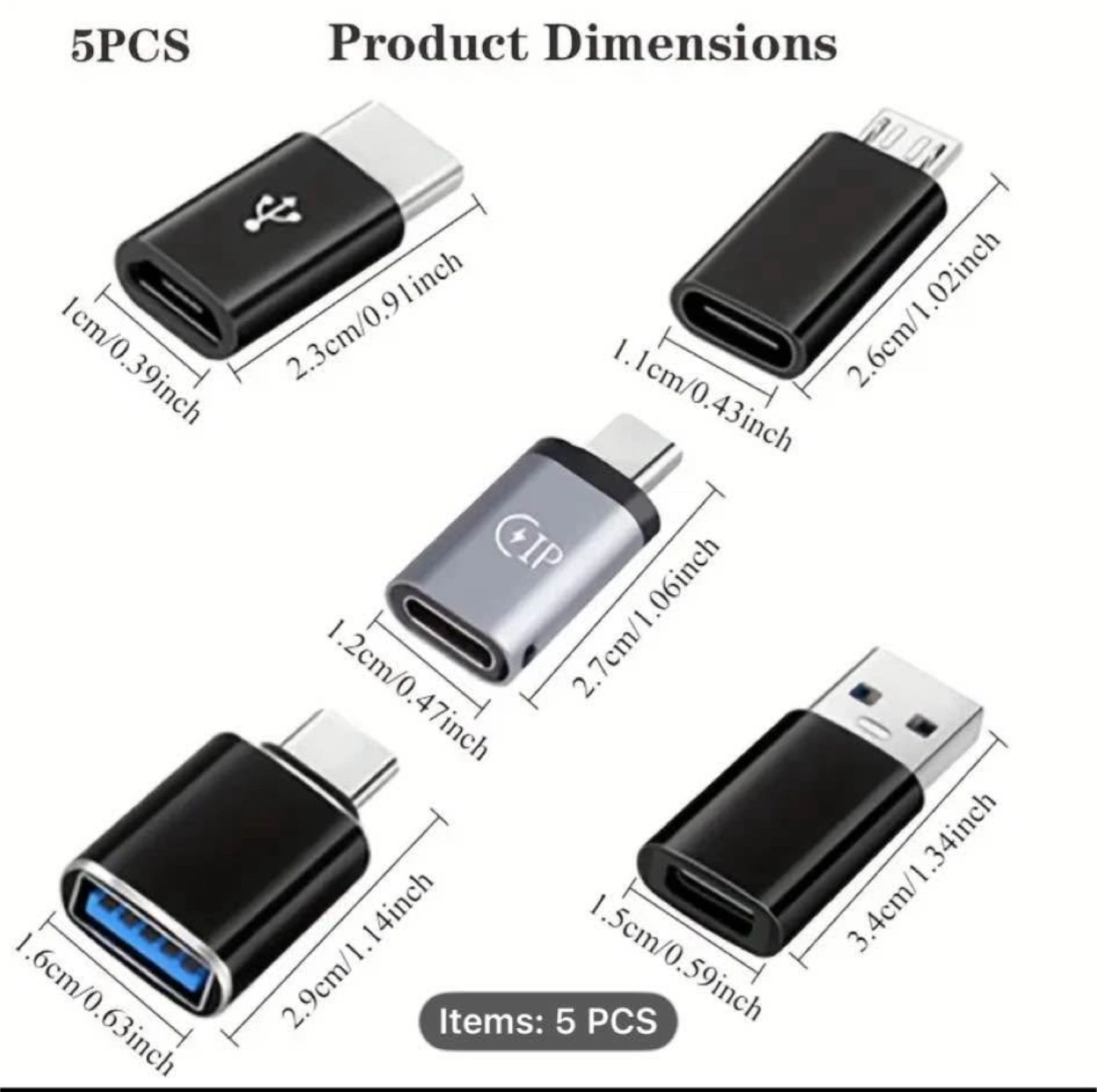 5pcs USB-C to USB 3.0 OTG Adapter USB A to USB C Converter Type C Female to Micro Male, Type C Male to 8Pin Female for Galaxy, Laptops, PC, Car