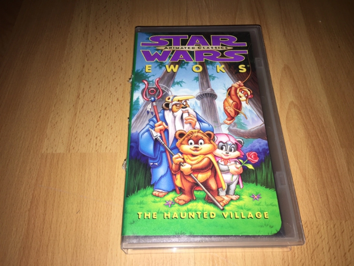 VHS tape of Star Wars Ewoks animated movie. Features a clear case. Ideal for a nostalgic evening of entertainment. Please see all photos.