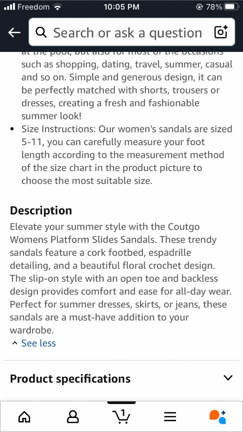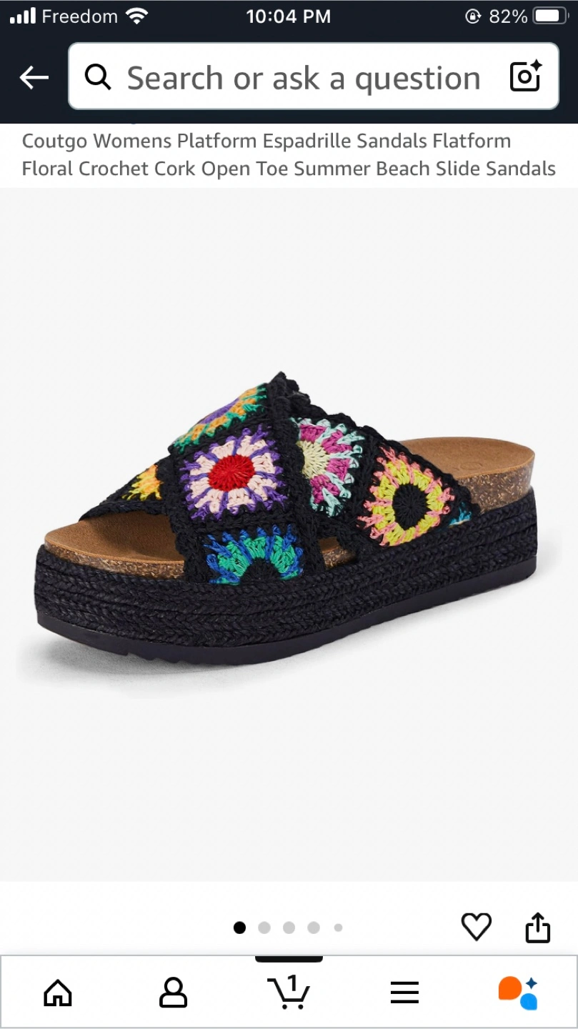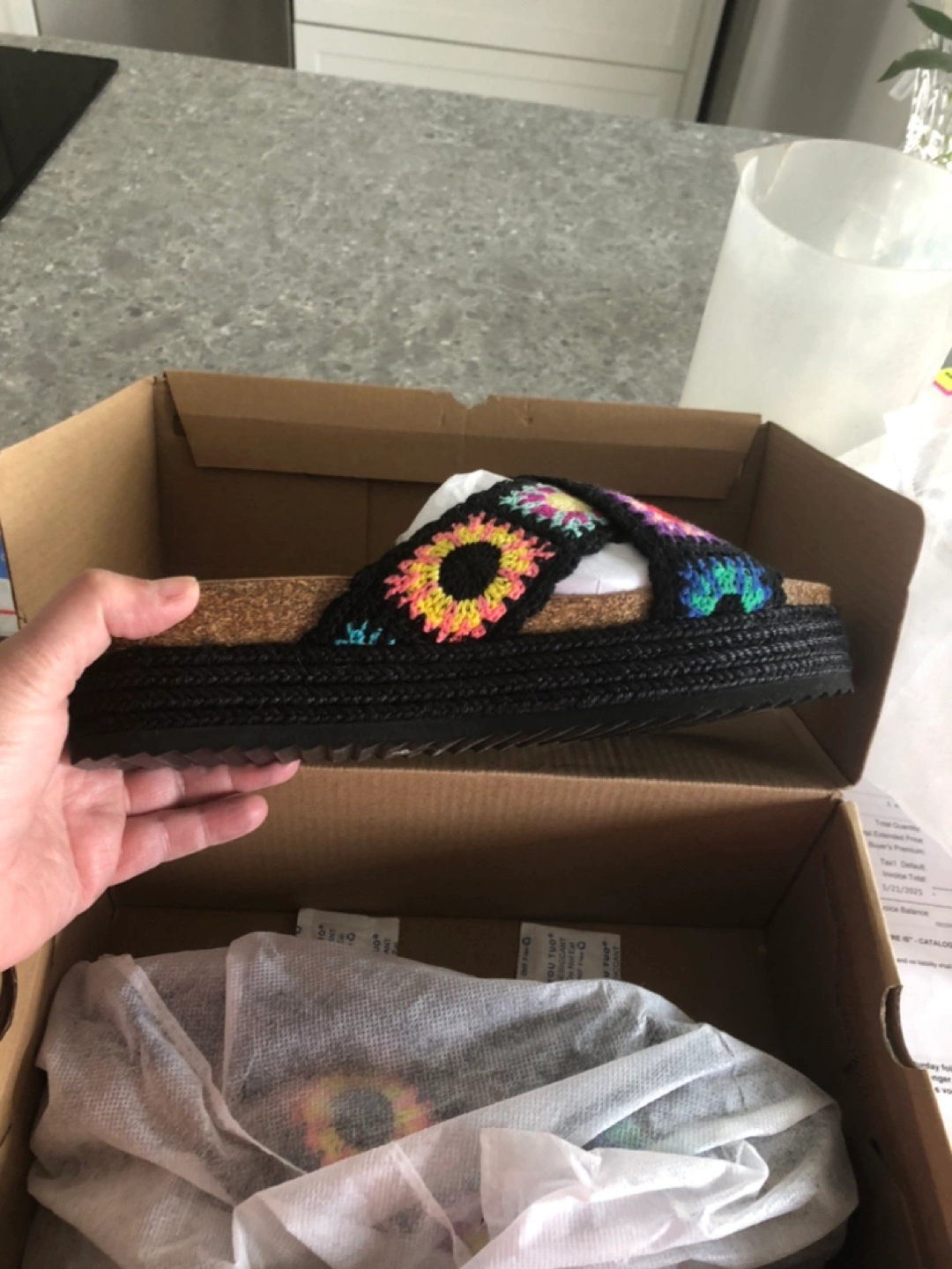Sandals featuring floral crochet detailing. Cork footbed and a non-slip sole. The open toe design can be very relaxing after a long day. Purchased on Amazon for $74+ tax steal at $50 Located southeast near Capilano mall