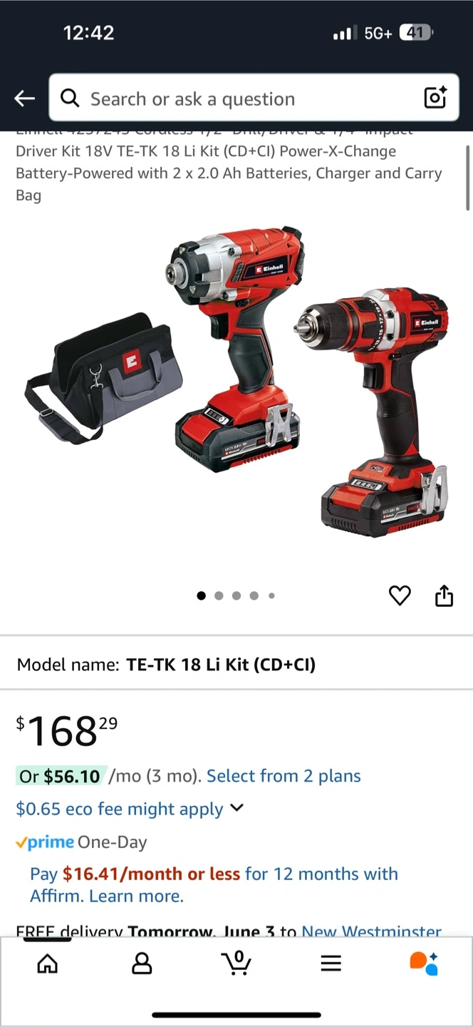 A power drill and driver kit. Comes with two batteries and charger. Great for DIY projects and home repairs.