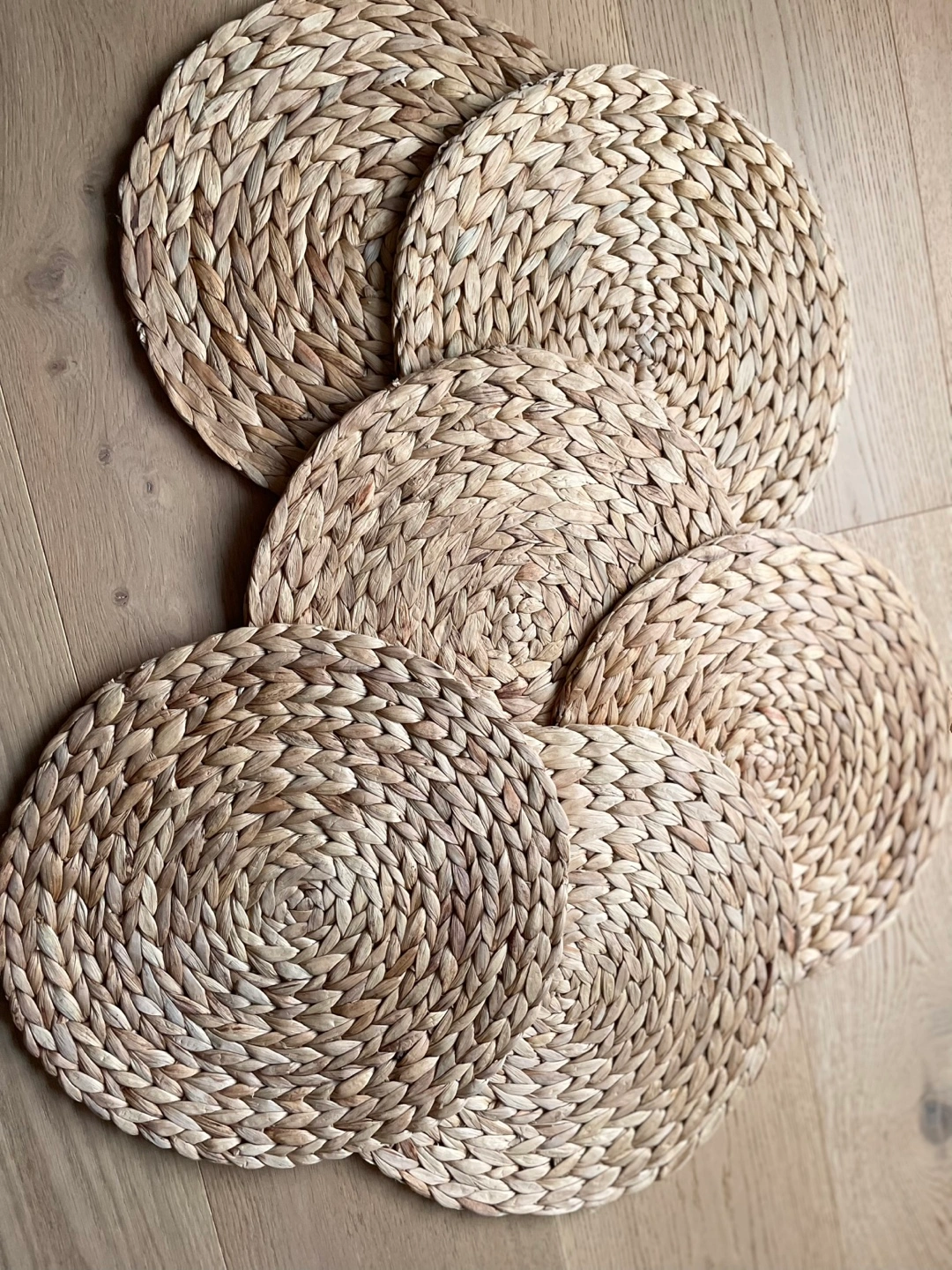 6 Pack, Rattan Round Placemats, Natural Hand-Woven Water Hyacinth. New! $20 firm. Reg. Price $50 +HST