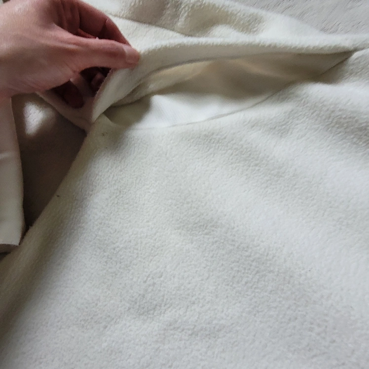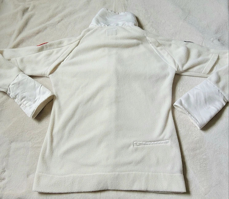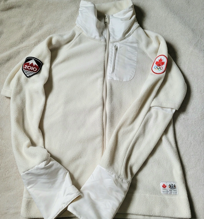 Ivory fleece jacket. Features a collar, long sleeves, and front zipper. Olympic patch on the sleeves and zipper pocket at the back. ♡No Holds ♡First Come First Serve ♡Serious Buyers Only Please.