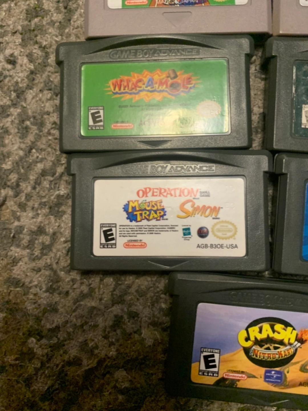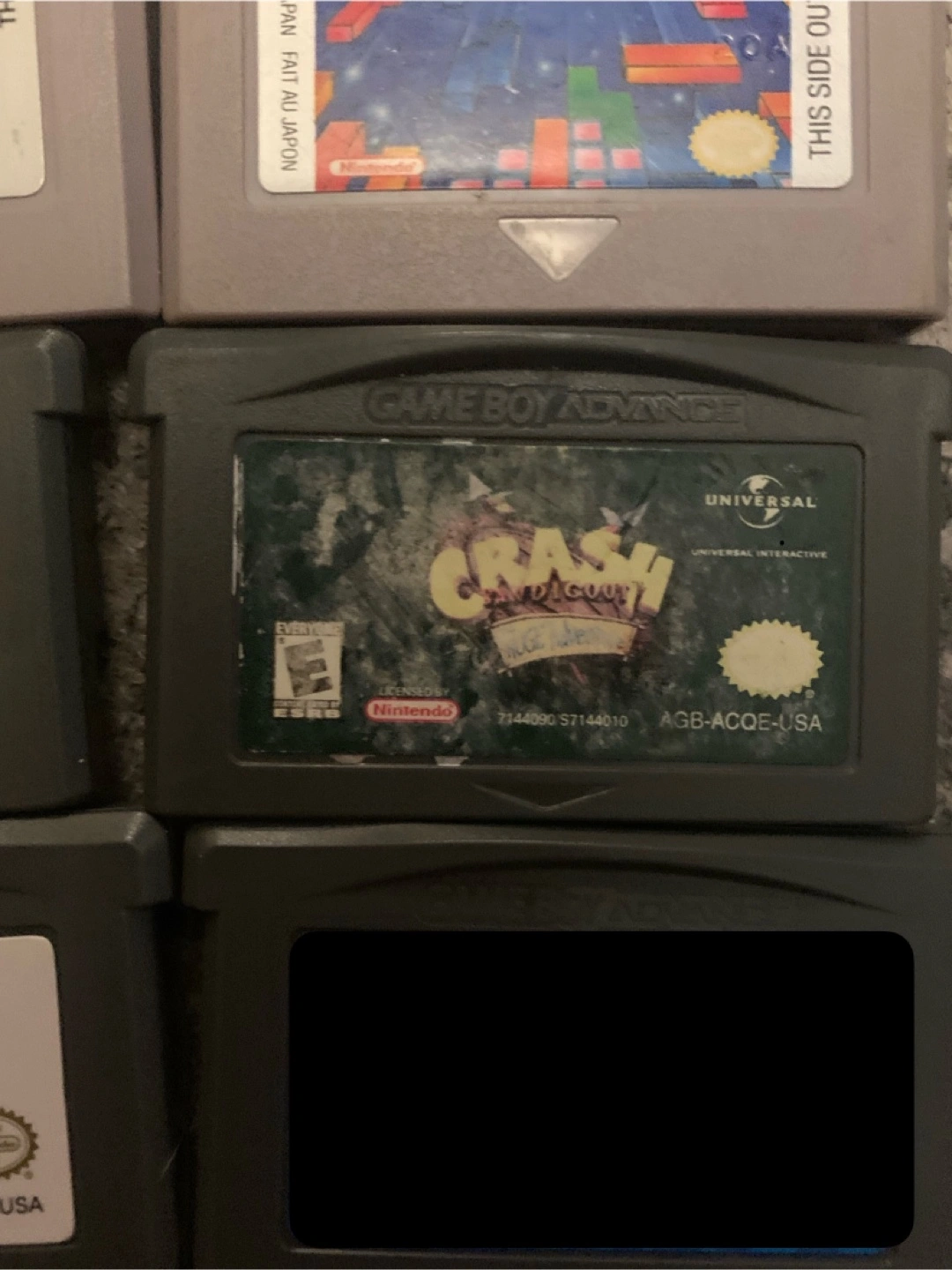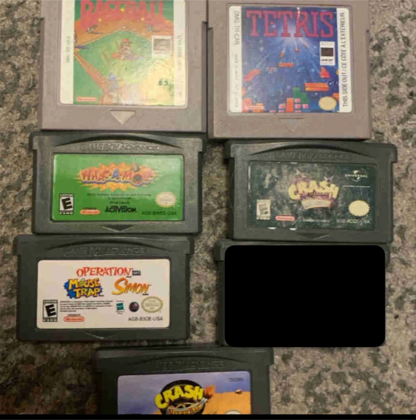 * Games included: Tetris, Baseball, Whac-A-Mole, Crash Bandicoot, Operation, Mario Kart Super Circuit and Crash Bandicoot 2. * Platform: Nintendo Game Boy and Game Boy Advance * Condition: Each game is used, with one wear and tear on the labels, but they are fully functional.