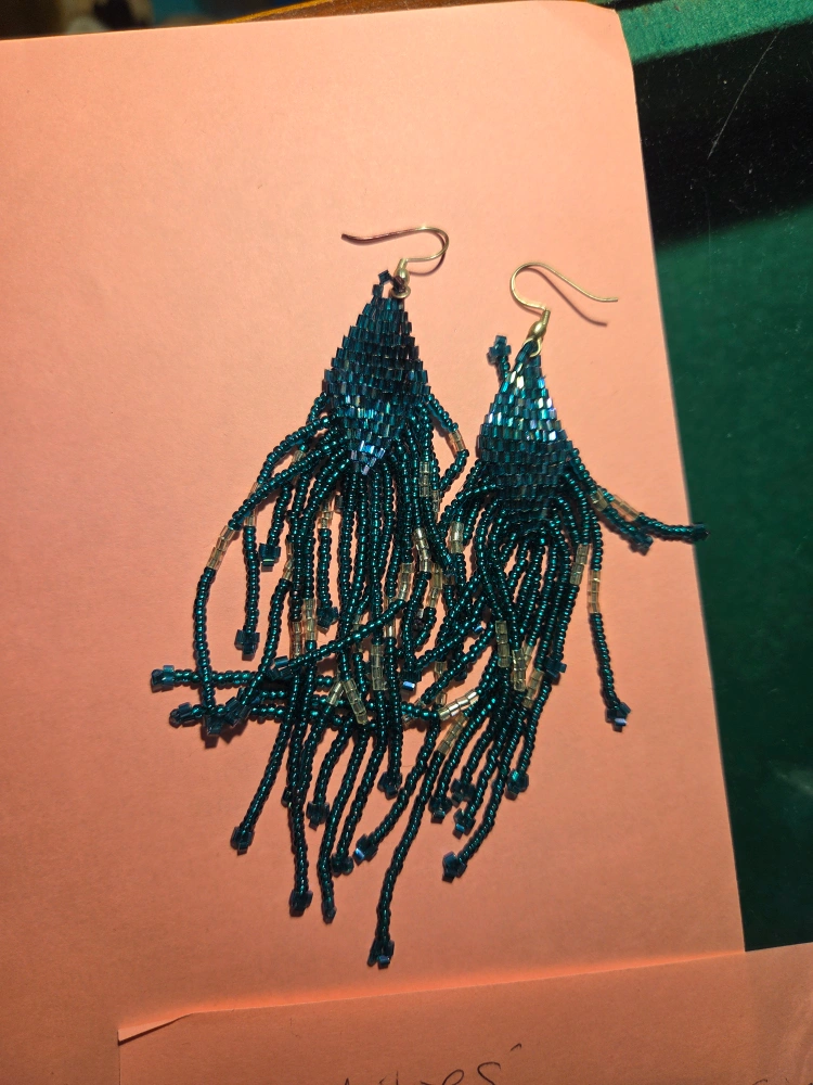 Handmade earrings with teal and silver beads. They have a chandelier design. used but life left in them. Must pickup. Please. no etransfer or long holds. this is a cash price. bring cash. This is in storage and I will meet you there. I can access the building during 8 to 430 Monday to Friday. No one is there outside of those times.