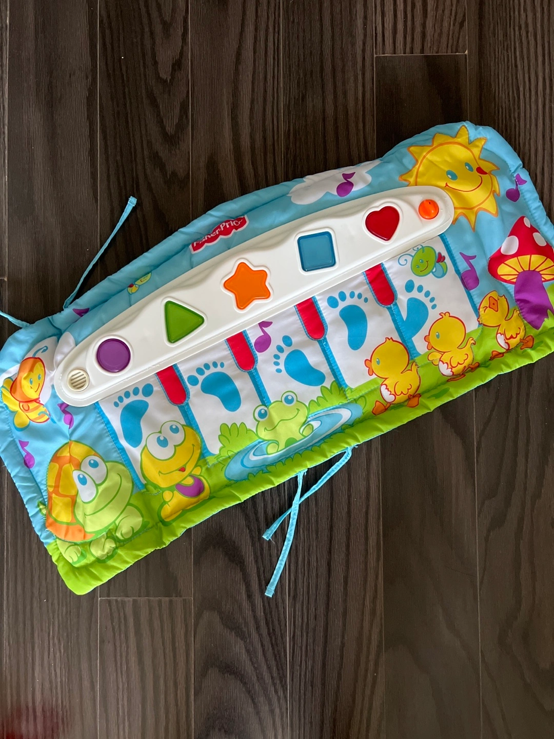 Colourful mat. Featuring different shapes, foot steps, and musical notes. Perfect for sensory stimulation and play.