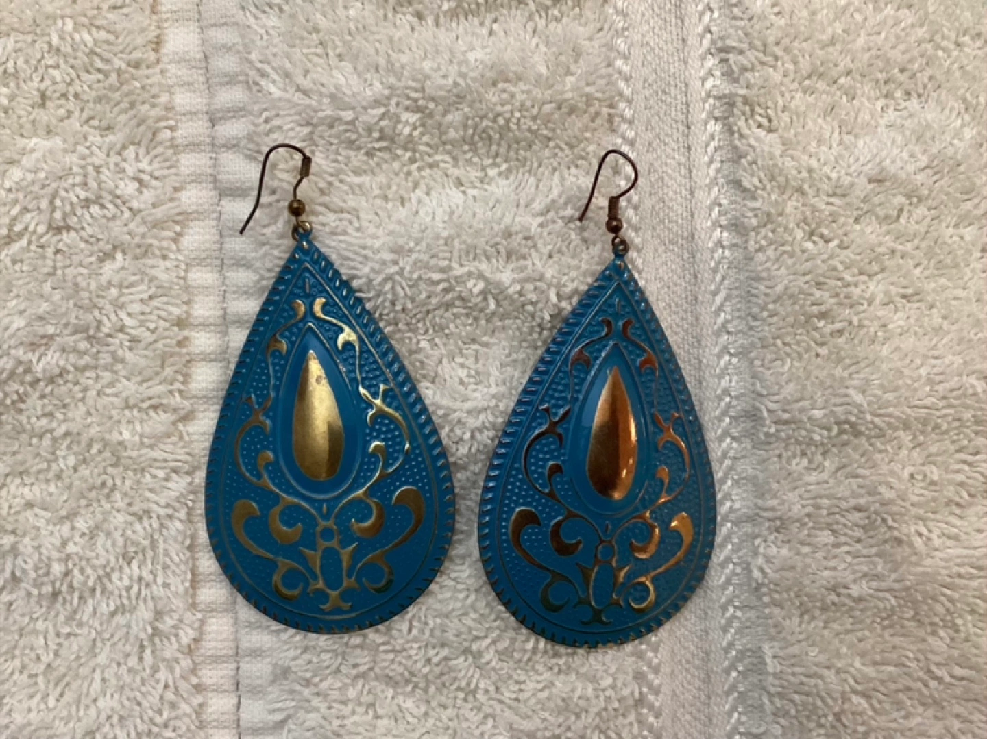 Large Dangle Earrings, approximate size 3 1/2” X 1 3/4”. $18 or best offer.
