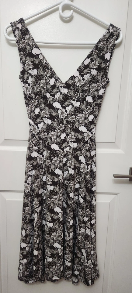 1. A fitted dress in a black and white floral print. Features a V-neck and sleeveless design. (around knee length) xs-s , tried once, $30 2. RW&Co. navy colour dress (without tag) xs, new, never worn value over $105 It has a ruffle and is feminine, and it doesn't look bulky because there's rubber band around the waist. The arm part is see-through style. $45 3. nine west high heels dark navy colour, size 5.5 tried once, Only the inner sole part of the shoe looks different because the color is peeled off, but there is nothing wrong with the shoe. $29 price is firm, only cash accepted Bundle $68 pet free and smoke free home pick up ONLY in front of TCDSB final sale *They are available if you see the post with no indication of "reserved." Please do not ask. Msg me when you want them only π
