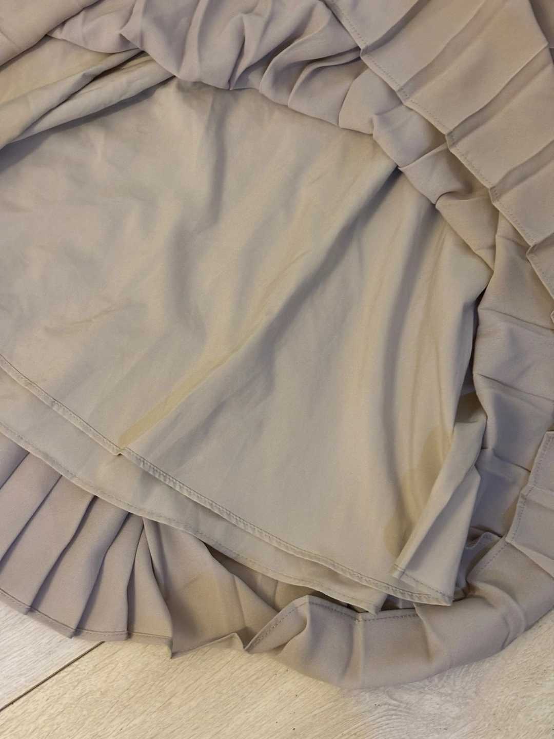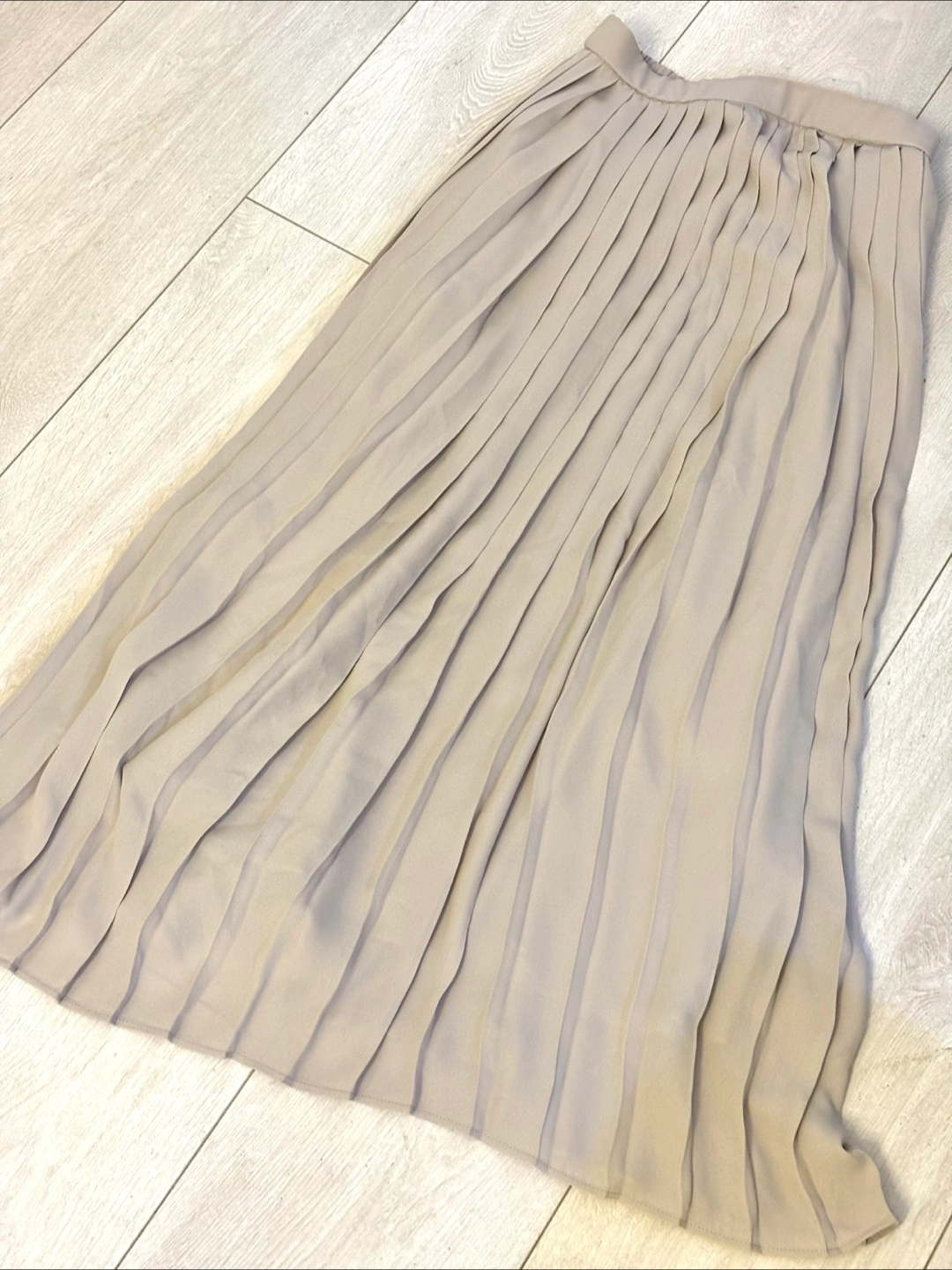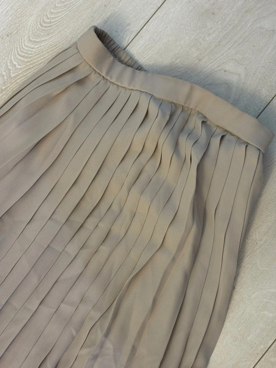 Beige skirt with pleats. The skirt has an elastic waistband on the back side for confort, size xs!
