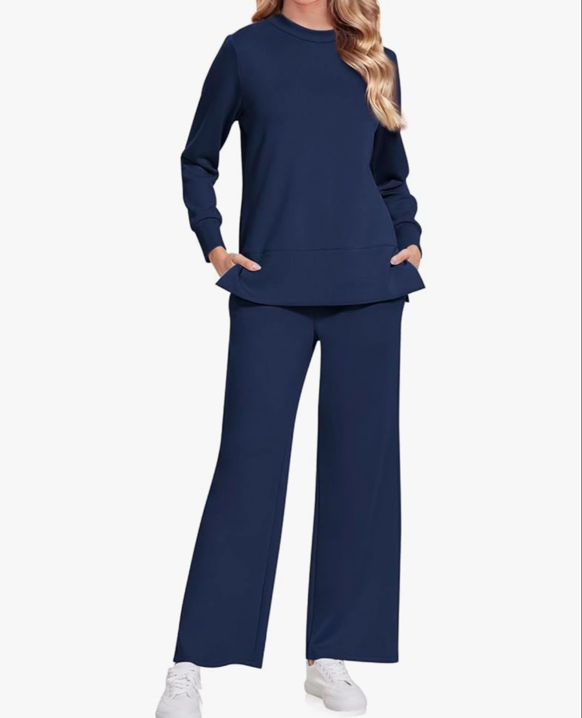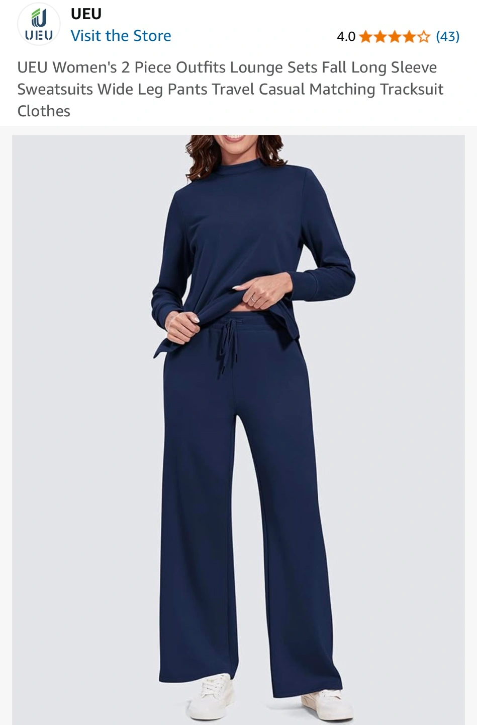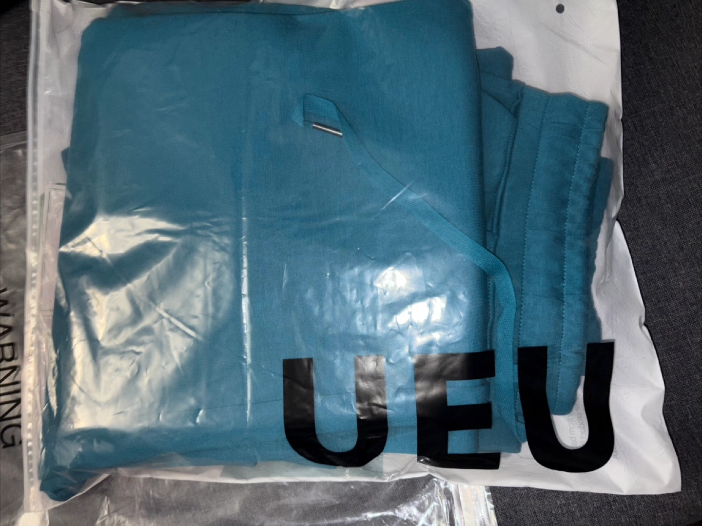 New UEU Women's 2 Piece Outfits Lounge Sets Fall Long Sleeve Sweatsuits Wide Leg Pants Travel Casual Matching Tracksuit Clothes Good for golf, yoga, cycling,hiking and tennis Color Blue-green Size-S Price is firm No delivery