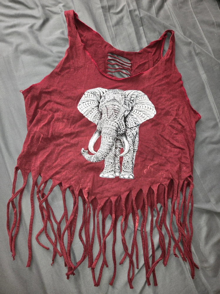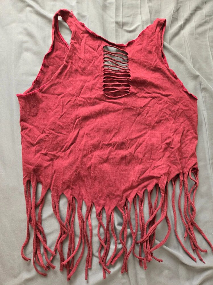 Cute fringed crop top from Thailand, 100% cotton! Wine/burgundy colour Cutout design on back PU near Robson/Jervis Size M