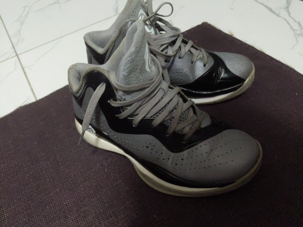 These Adidas basketball shoes are gray and black. They have gray laces and a white sole. Great for your next basketball game, or even to relax in after a long day. No delivery Serious inquiries only!