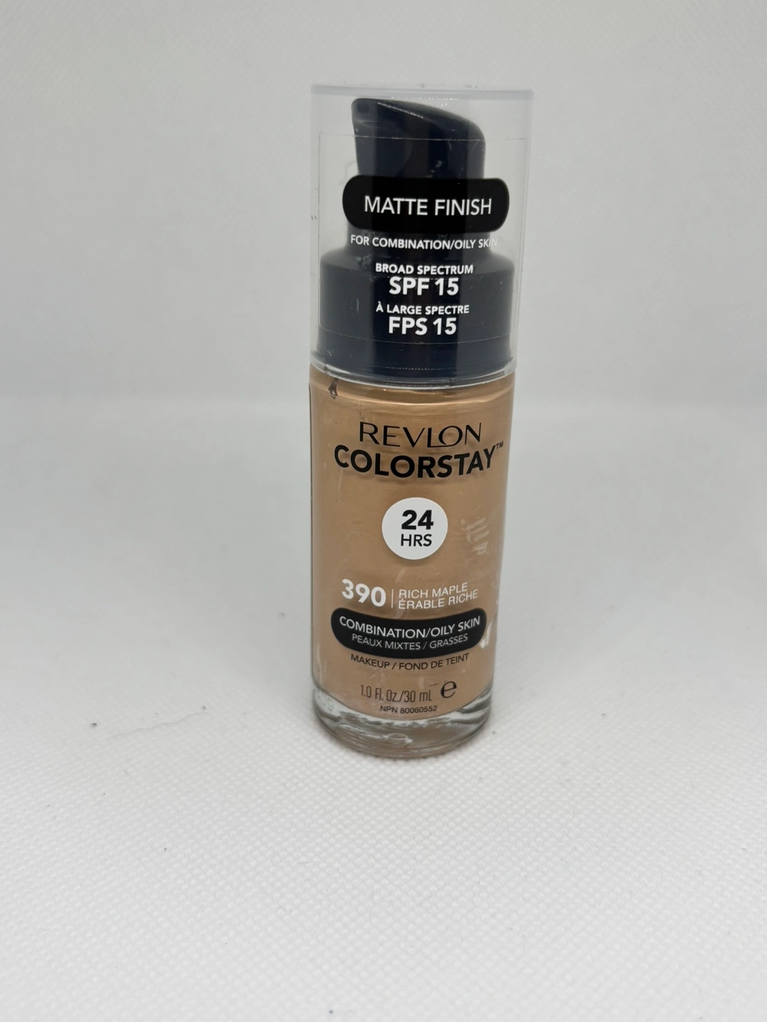 A bottle of foundation, perfect for combination or oily skin. Provides SPF 15 protection. You will feel at ease when you wear this foundation.