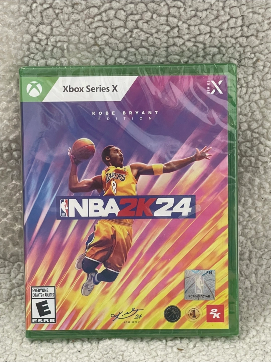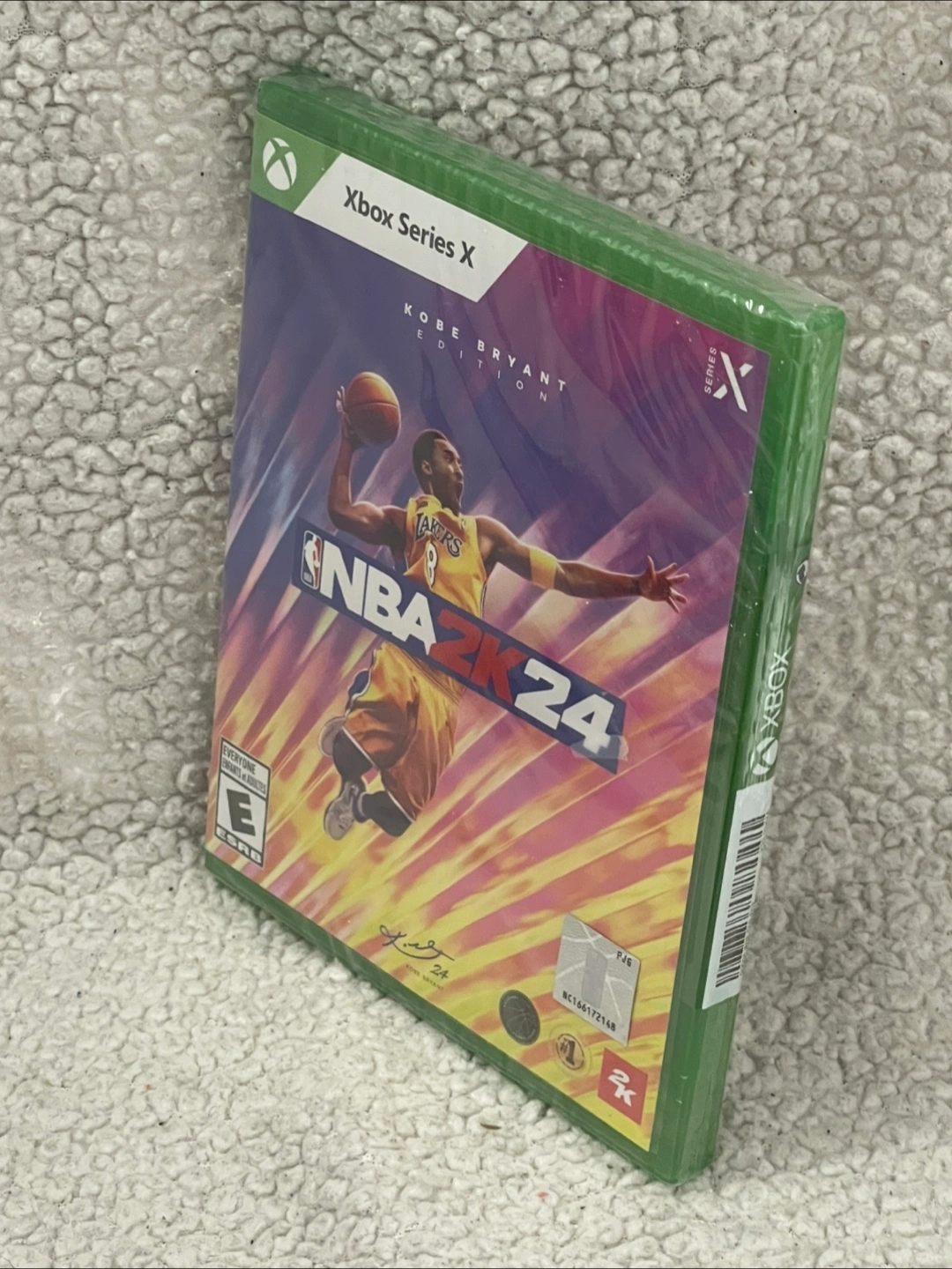Here is a sealed copy of NBA 2K24, the Kobe Bryant edition. It's for Xbox Series X. The game is in original packaging.