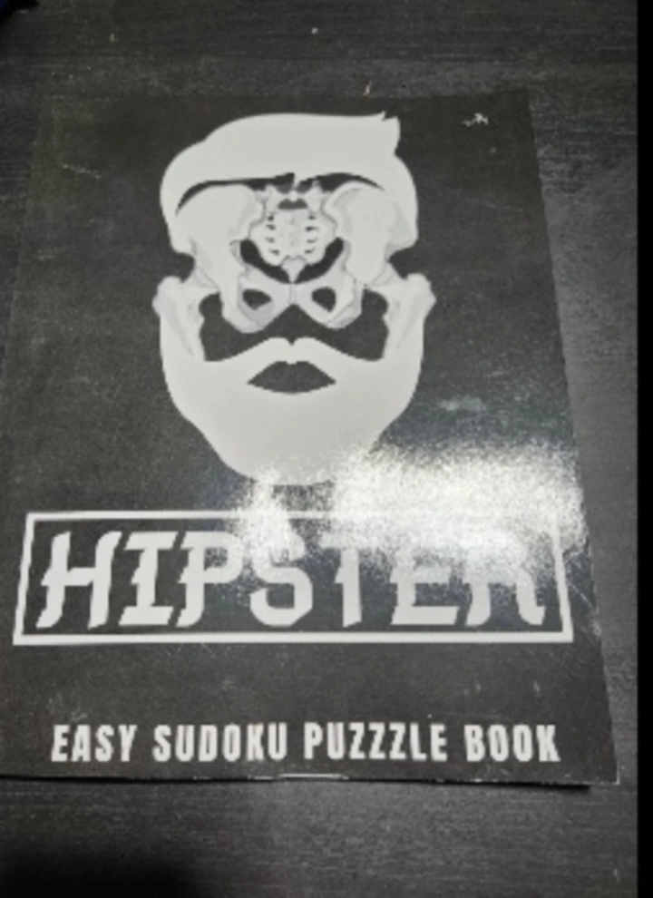 Sudoku puzzle book. Features black and white cover with a skull-like hipster design. Perfect to unwind with after a long day. easy and large print book brand name MSRP 19.99