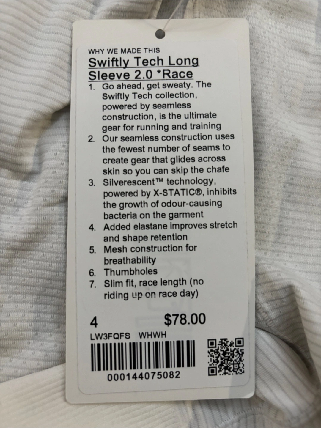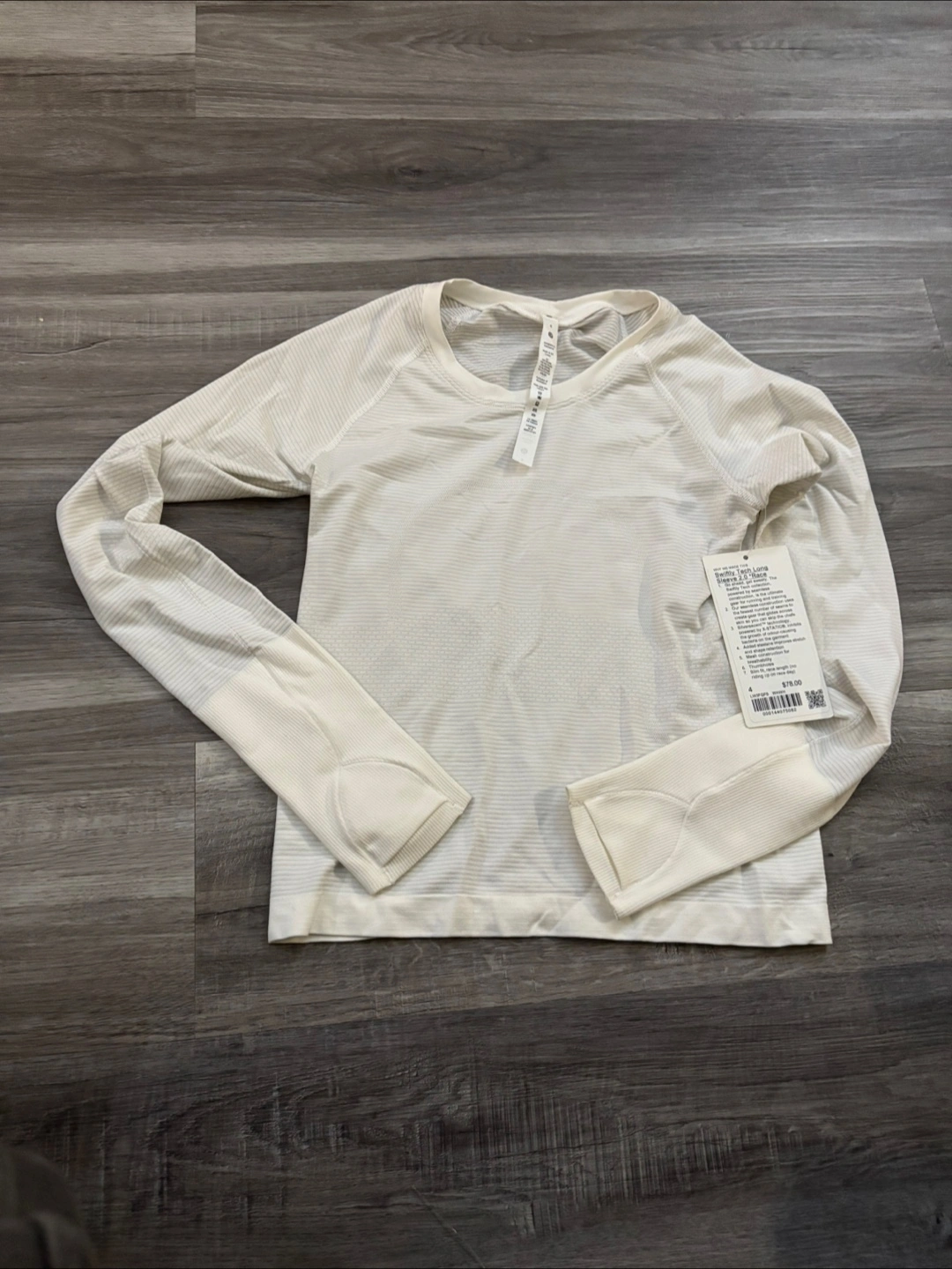 The long sleeve has a crew neck and thumbholes. It appears to be a slim fit. Perfect for layering on a chilly day.