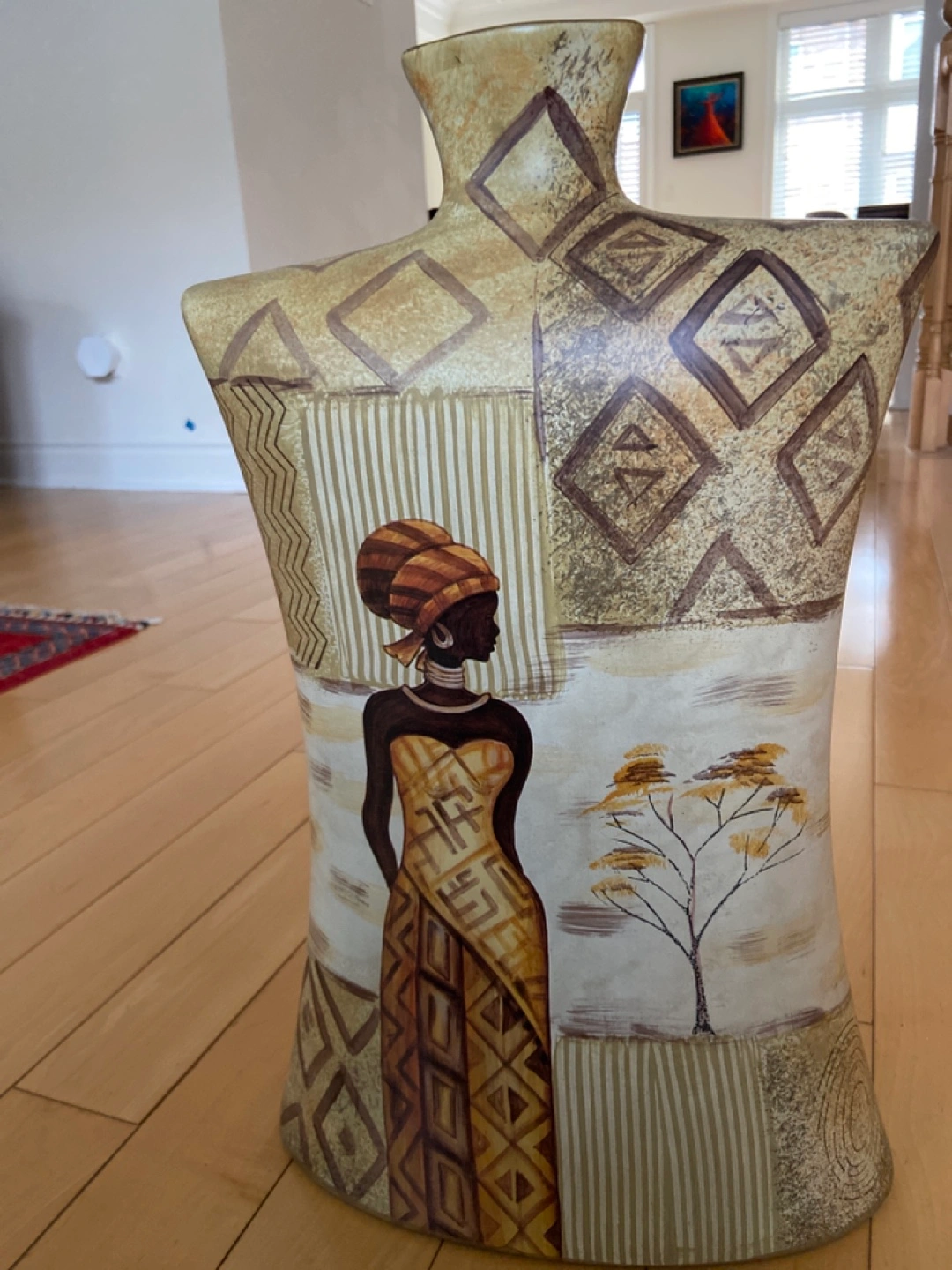 Beautiful vase with an African art design. Consider keeping in the corner of the room or on a console.