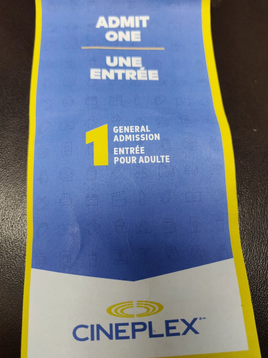 A Cineplex movie ticket. Admit one general admission. A great way to unwind after a long week. No expiry.