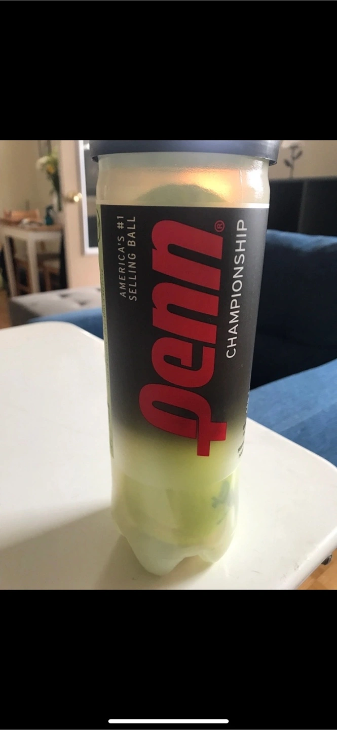 Container of tennis balls. Black and red color scheme. White plastic container with a blue lid. A great way to get some fresh air and exercise.
