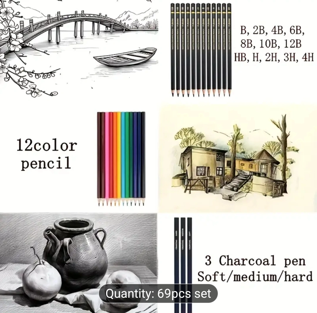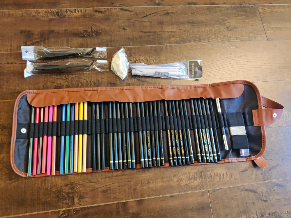 A complete new set of art supplies. 49 pieces including pencils, blending stumps, and other art tools. It also comes with a carrying case and belt for easy storage and transport, making it perfect for artists on the go. From a no pet non smoking home Meetup near Finch and Yonge Cash only Please check other listings on my profile :)