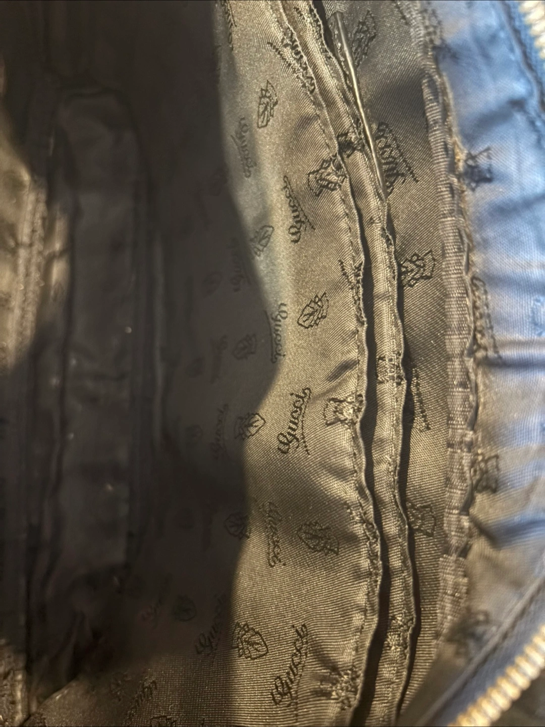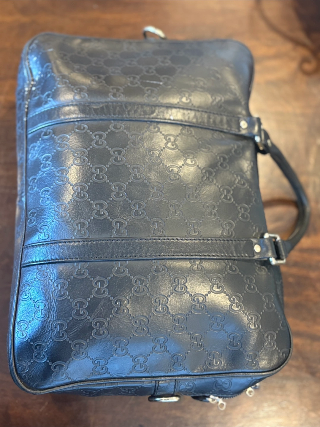Features a debossed logo pattern. It has a dual handle design and a branded tag. This bag can be used to hold all your essentials, giving you peace of mind.