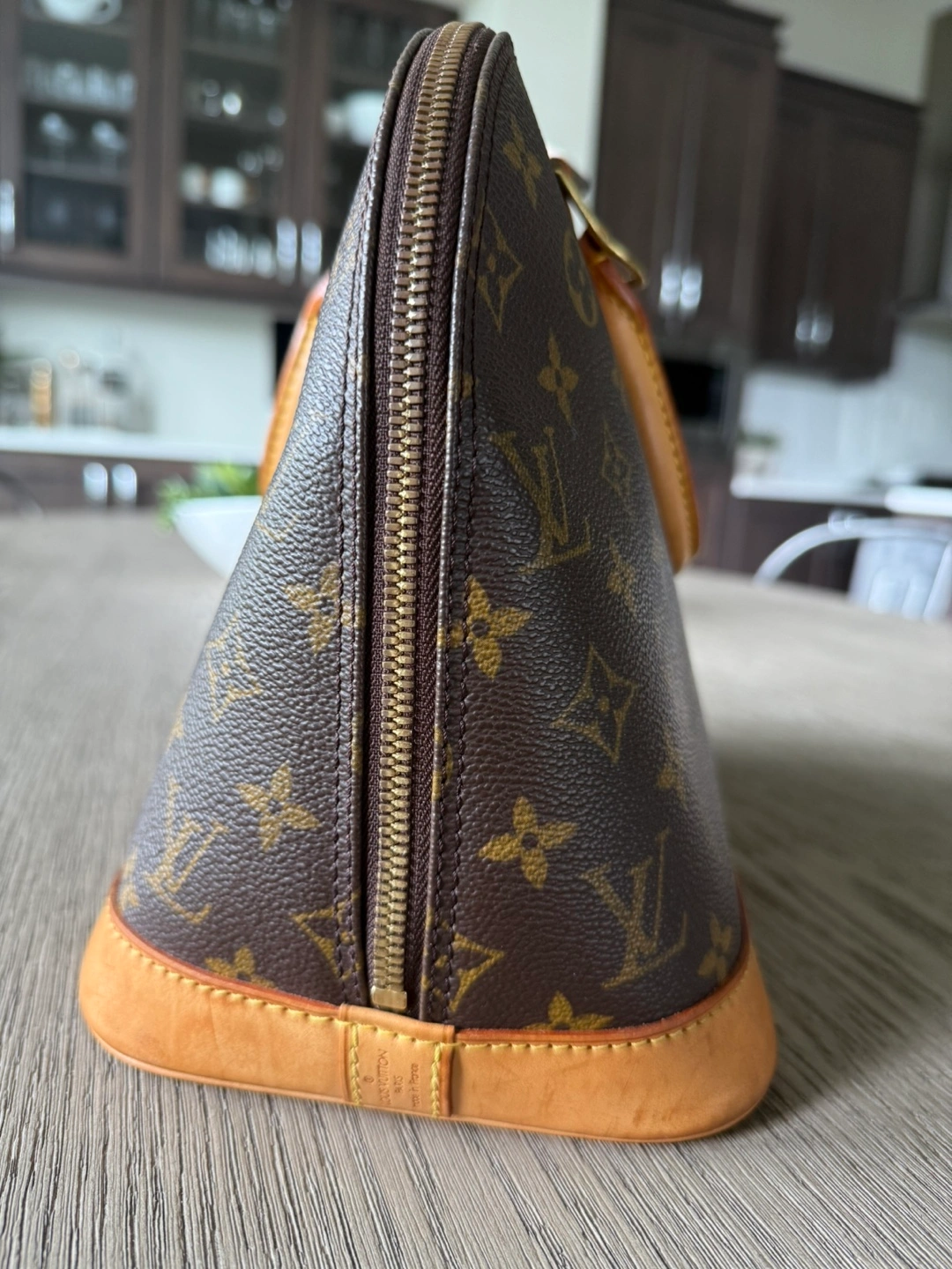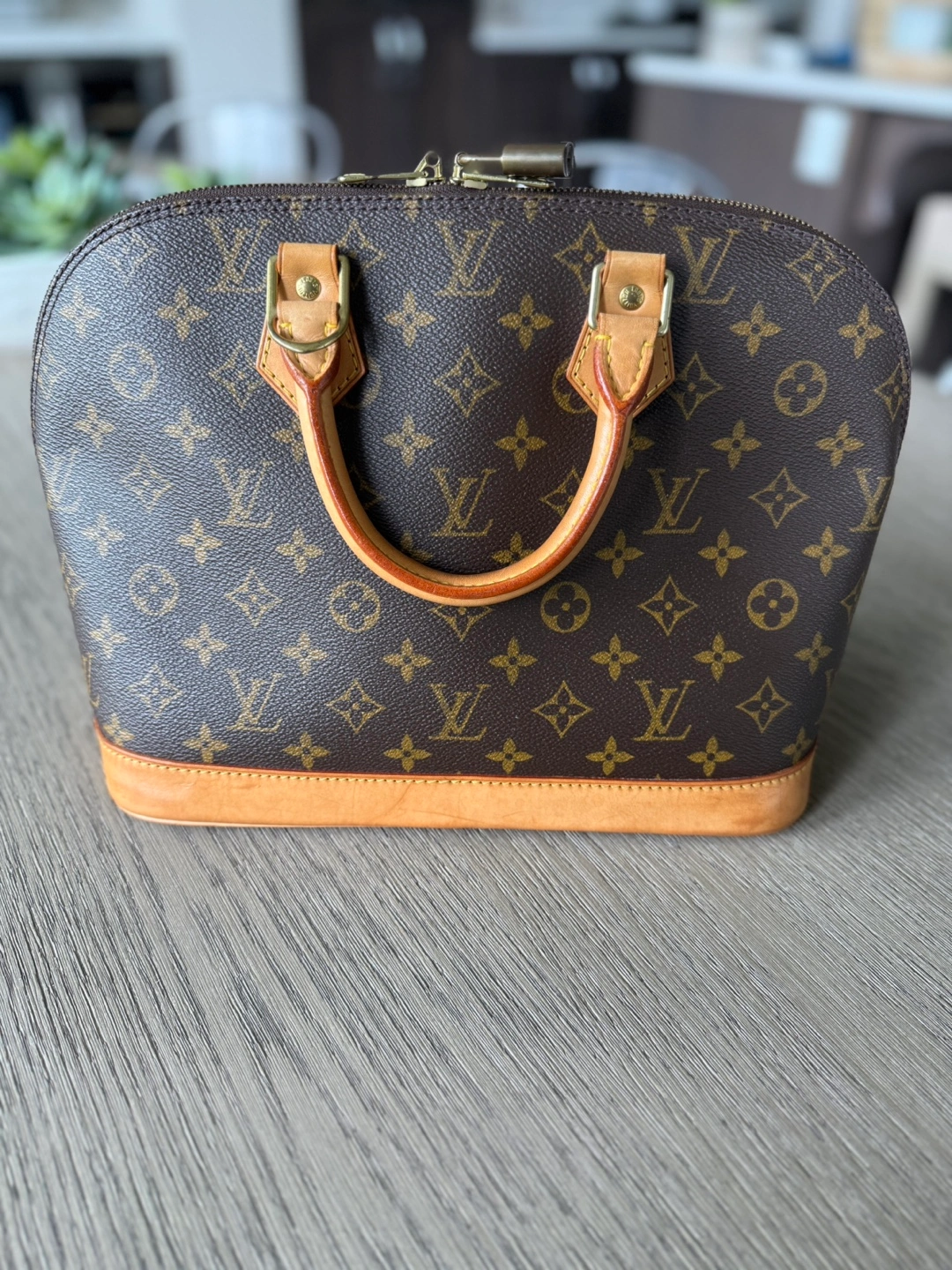 Features the iconic monogram print. Gold hardware, including a zipper and lock. A great bag for carrying your essentials in style.