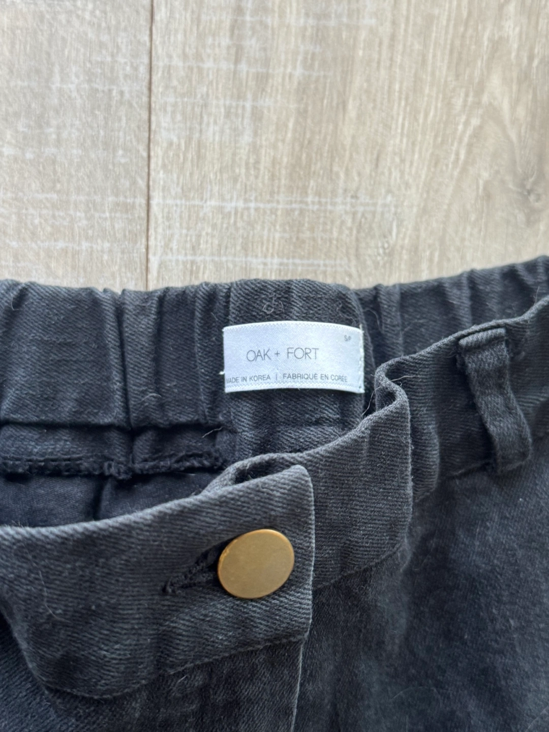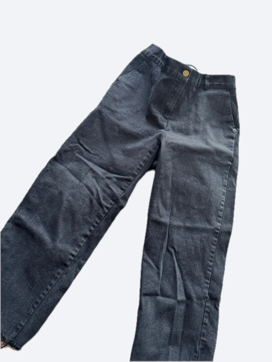 Black jeans with a button closure. Feature a classic cut. These would be perfect for a nice stroll along the water.