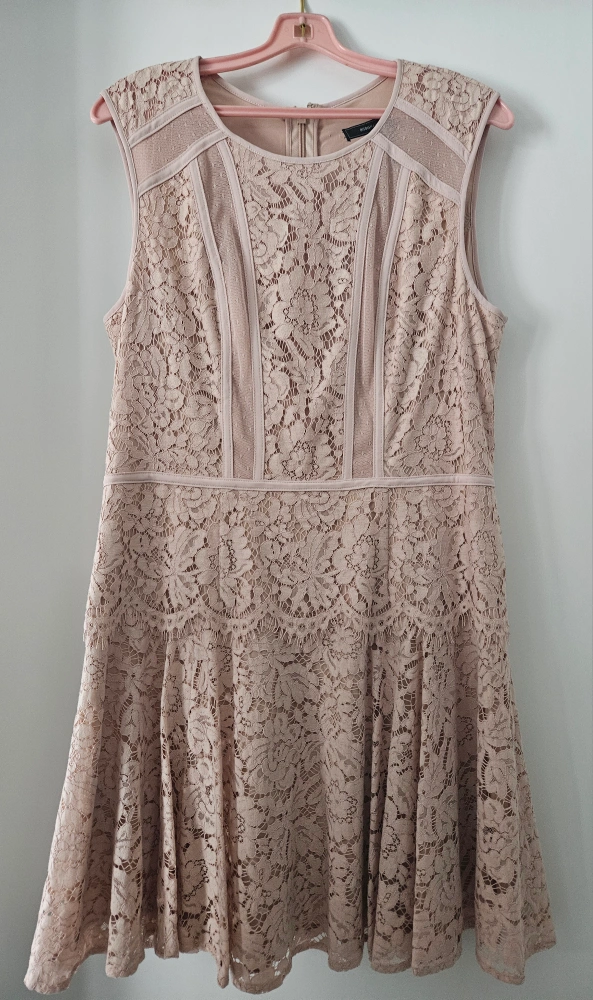 Briefly worn once. Beautiful lace dress. Sleeveless design. Features a flattering silhouette. Dress length approx. 35". Pick up only @ McMahon drive near North York Ikea