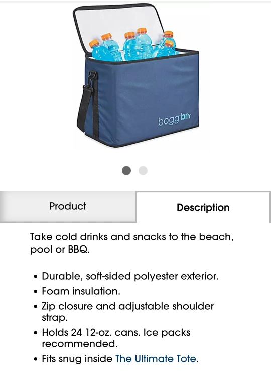 A great bag to hold your drinks, the soft-sided cooler fits snug and is perfect for taking your goodies to the beach. The bag is durable, and has a zip closure and adjustable shoulder strap.