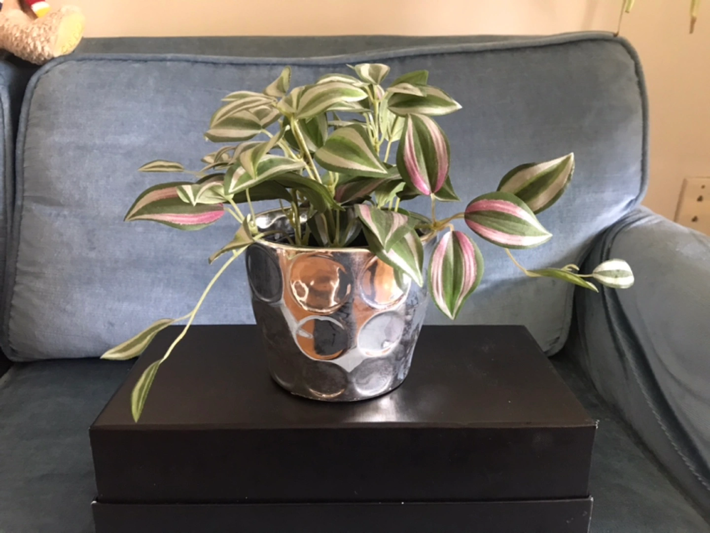 A stylish plant pot to spruce up any space in your home; or garden/patio/balcony. Ceramic Metallic Silver Coating, with a pattern. Protective padding on the bottom. 4 1/4" H X 5" W. ✨FREE: Will include a plastic pot to place inside the ceramic pot, for your plant.