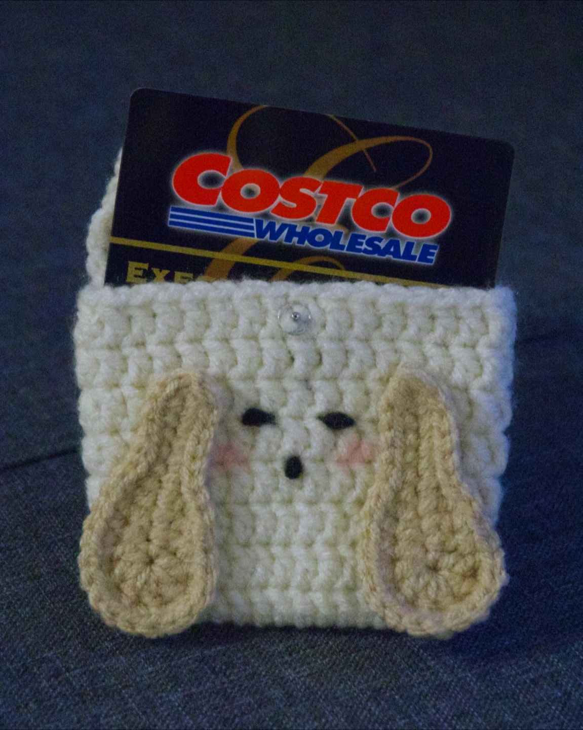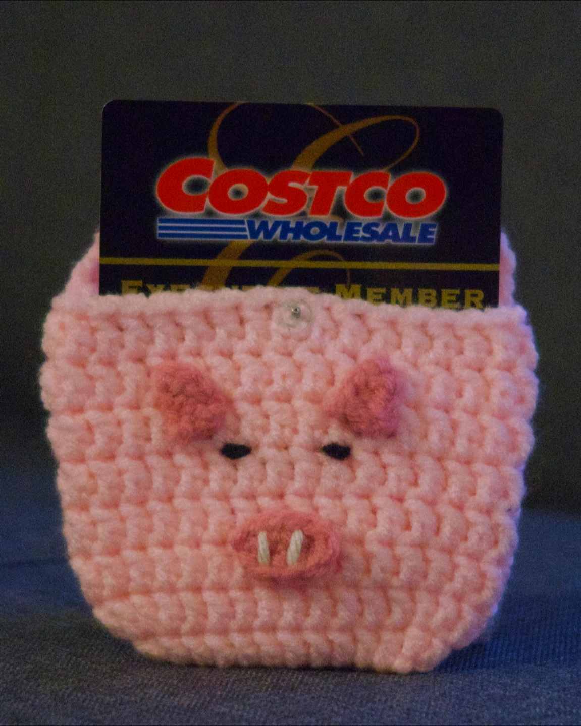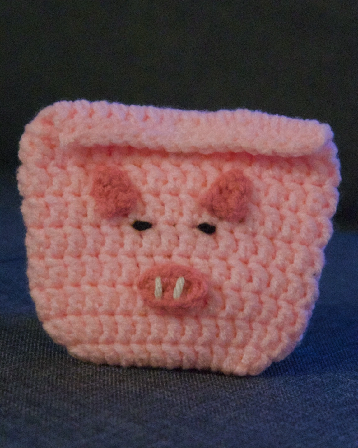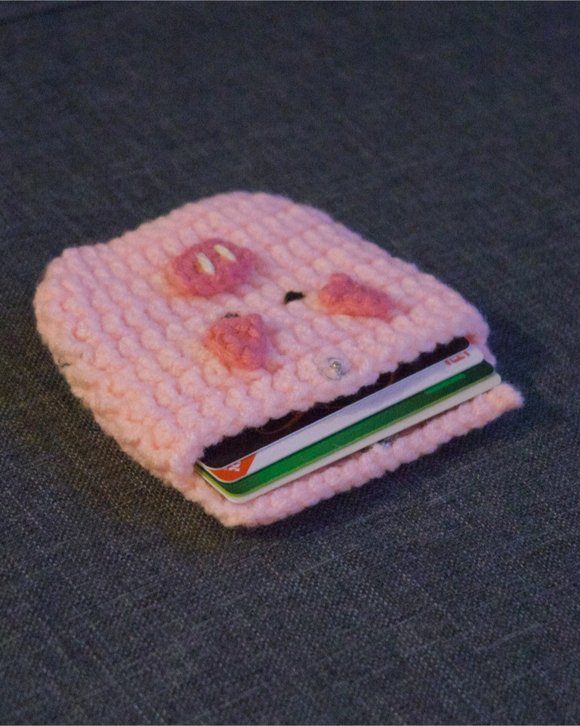 Adorable, handmade crochet card holder. Featuring a pig design. Includes a button closure. Perfect for keeping your cards safe and secure, creating a sense of calm in your day. $7 for each Ready to go Pickup at V5H0J8