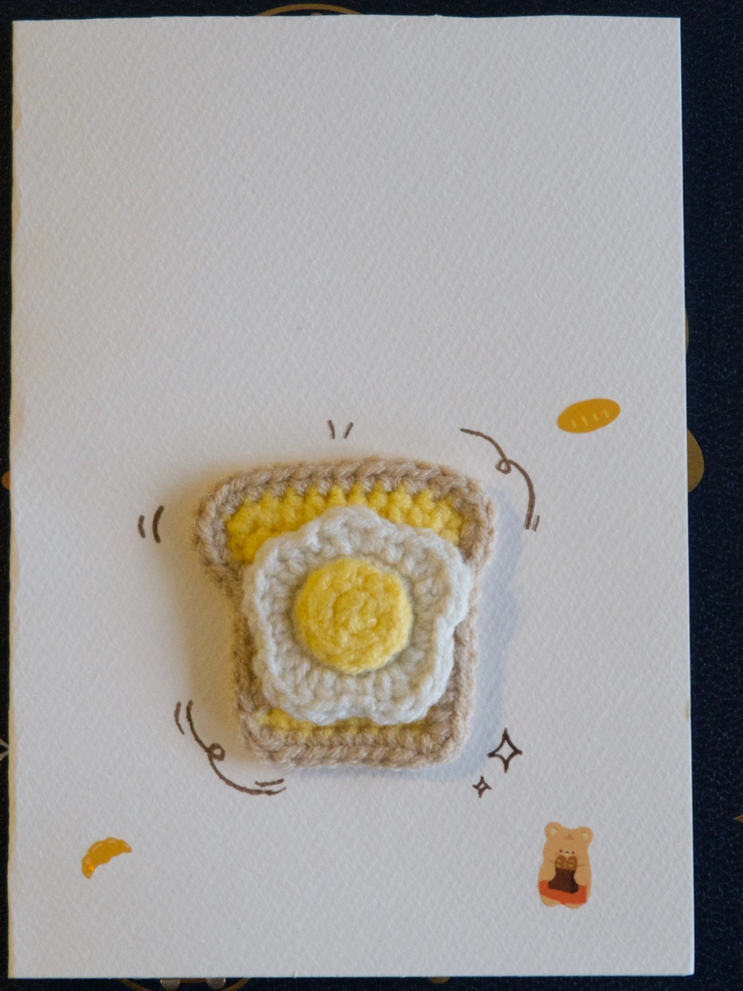 These cards feature adorable crochet designs. The cards are decorated with different designs such as a Christmas tree, a gingerbread man, a tomato, a cupcake and a slice of toast with an egg on top, each design has some additional decorative elements. Consider sending them to friends and family for a touch of handmade warmth. $5 for each Need around 1 week to finish Pickup at V5H0J8