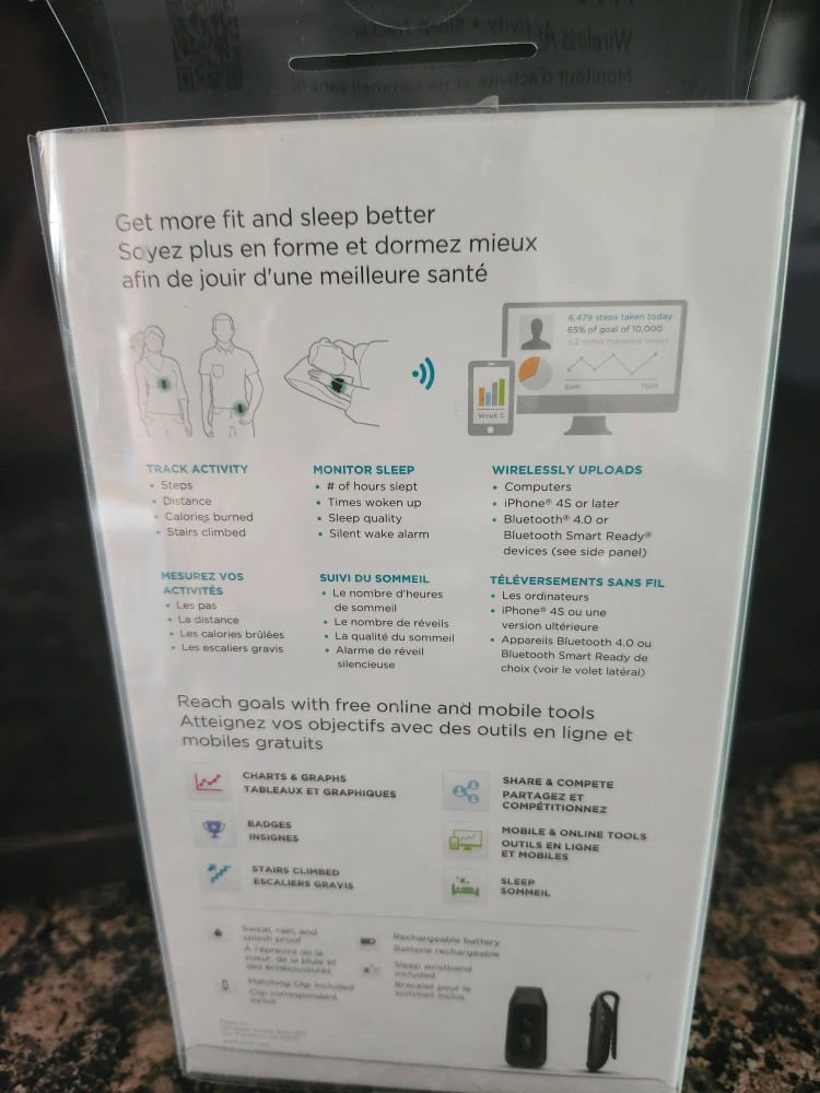 A Fitbit One wireless activity and sleep tracker. It is new in its box. It is great to track your sleep patterns and get a good night's rest. ACCESSORIES ONLY $20. CALL SARAH 647 338 7177