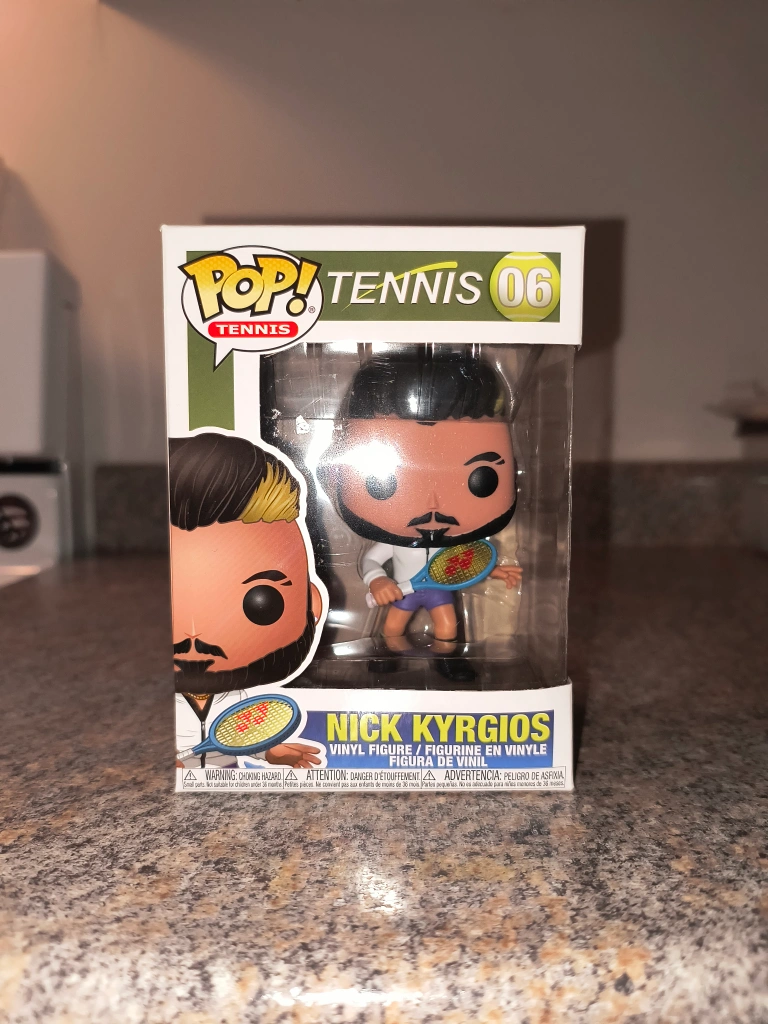 This Funko Pop! Tennis figure of Nick Kyrgios is a must-have for collectors and tennis fans alike! Brand new, it's in pristine condition, ready to be displayed or added to your collection. * Character: Nick Kyrgios * Series: Tennis * Funko Pop! Number: 06 * Status: Vaulted Based on similar listings on Kijiji and other platforms, a fair price for this new Funko Pop! is around $20-$30. Don't miss out on the chance to own this awesome collectible! And just so we're clear, if the ad is up, it's still available, so no need to ask!