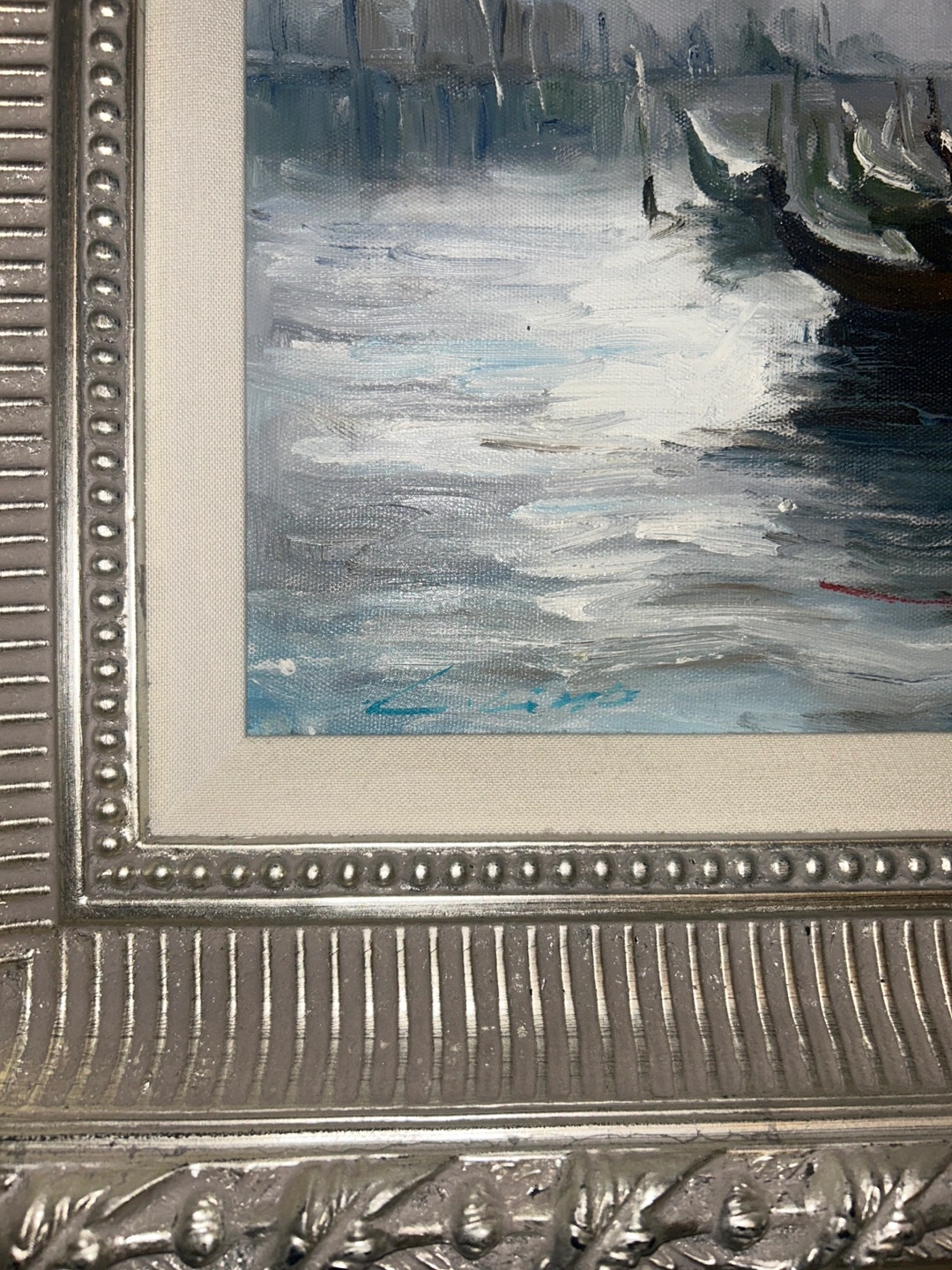 Venice Canal Painting in Ornate Silver Frame